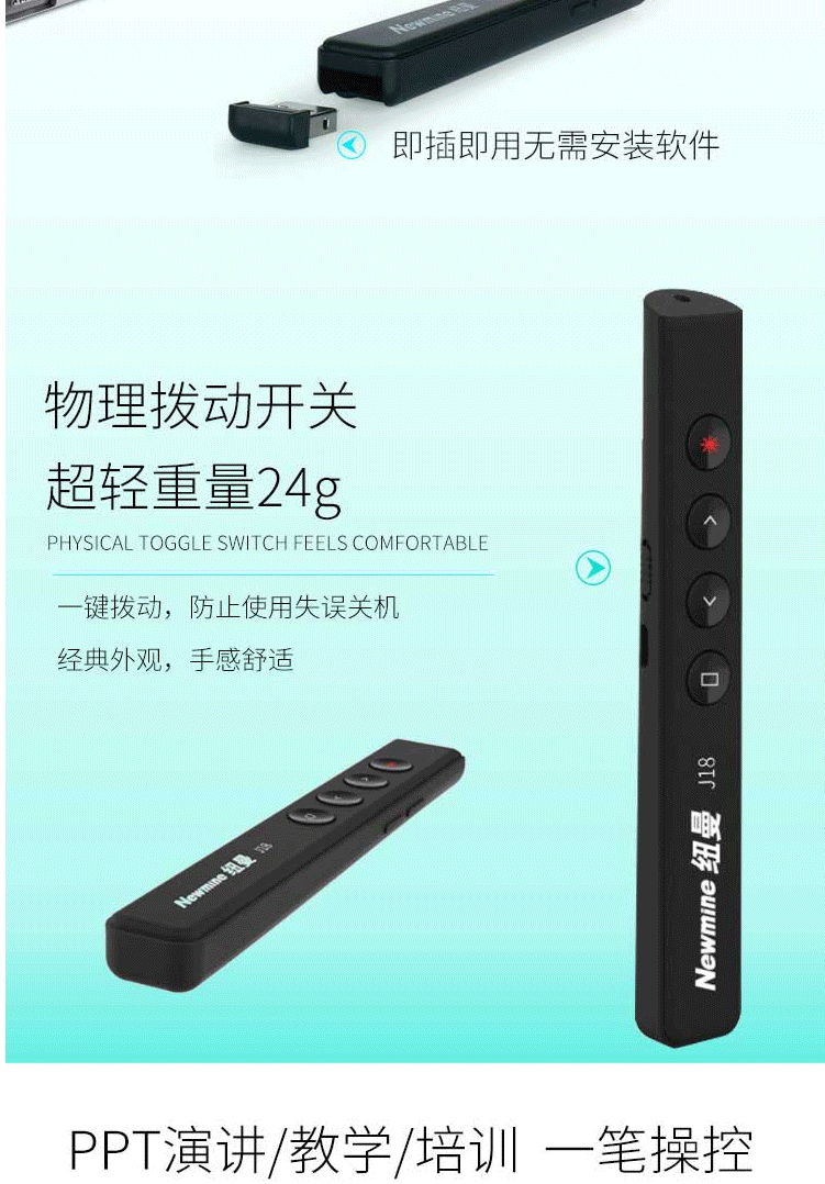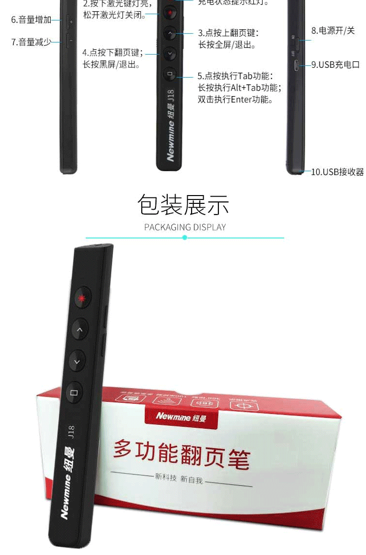 商品名称:纽曼(Newmine) NM-J18 翻页激光笔 红光 充电便携式翻页笔/PPT翻页笔无线演示器