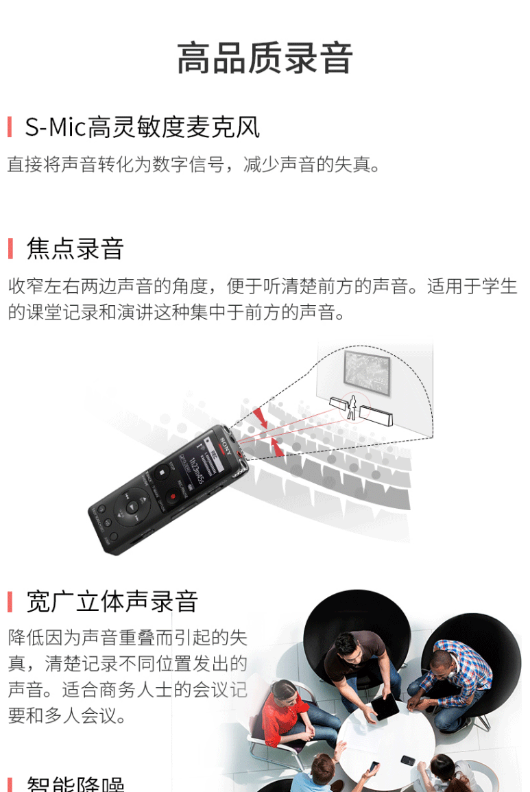 索尼(SONY)录音笔ICD-UX575F 16GB 黑色 智能降噪升级款 专业线性录音棒
