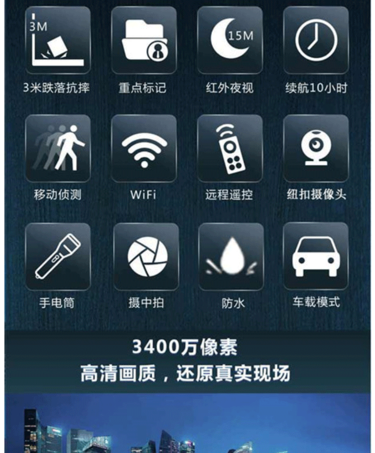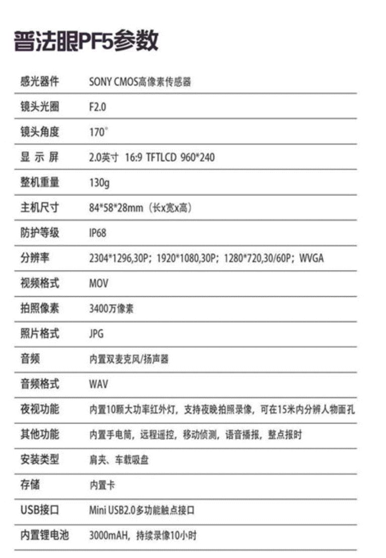 商品名称:普法眼DSJ-PF5执法记录仪32G 3400万相素高清红外夜视WIFI可连接手机 黑色