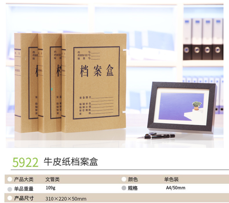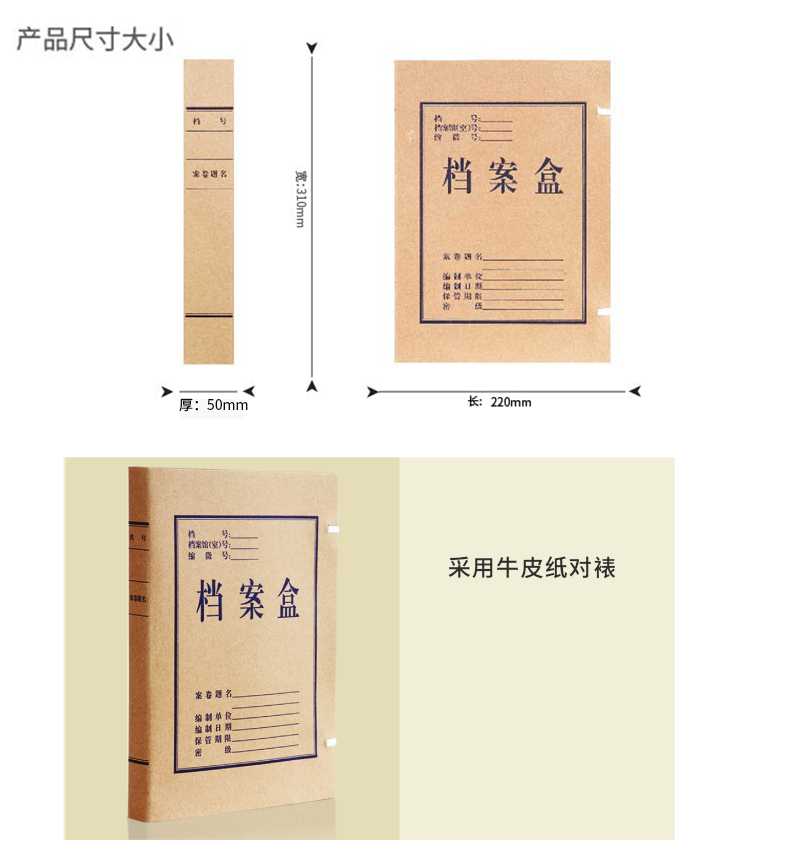 商品名称:得力(deli)50mm高质感牛皮纸档案盒 党建资料盒 加厚文件收纳盒 财务凭证盒5922 (10只/组)