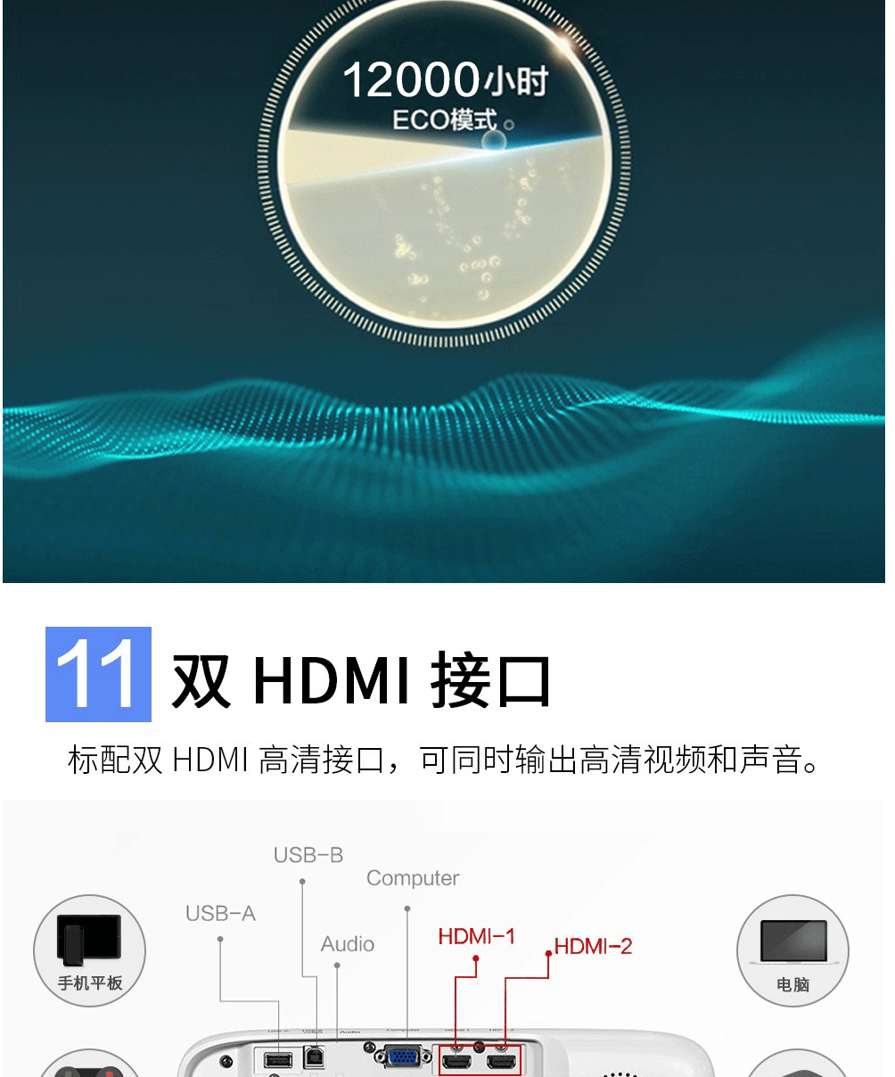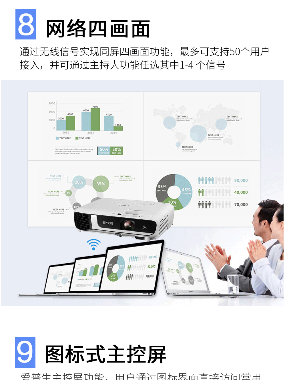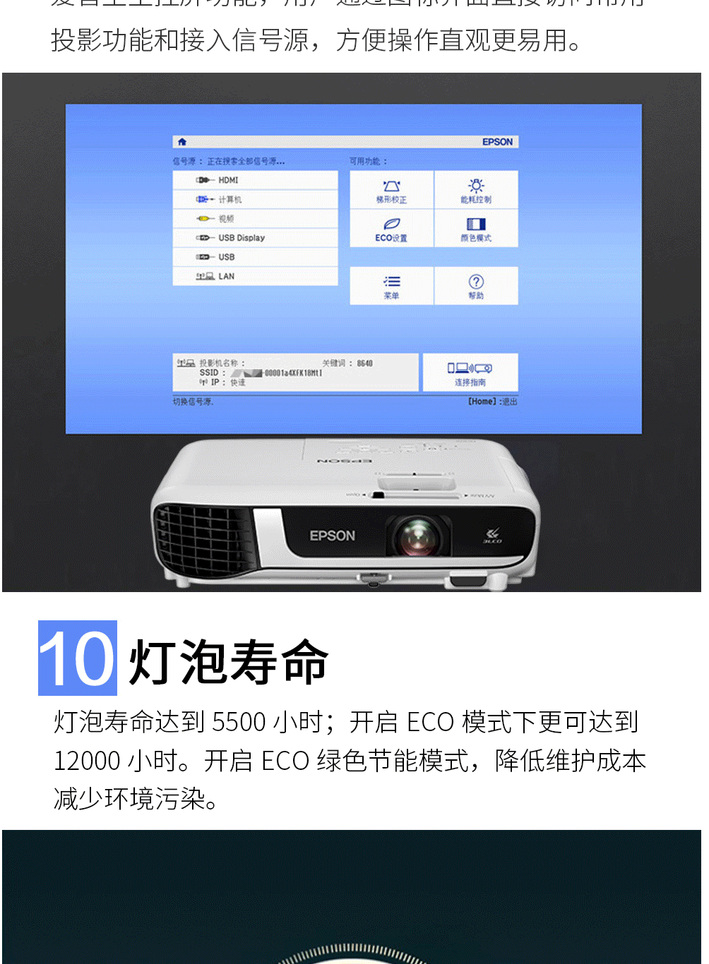 爱普生(EPSON)CB-FH52 投影仪 投影机(1080P全高清 4000流明 1.6倍变焦)投影