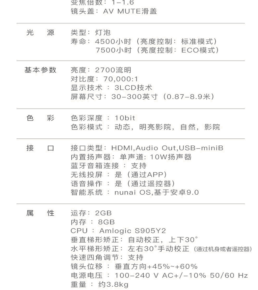 亮度(流明):2700