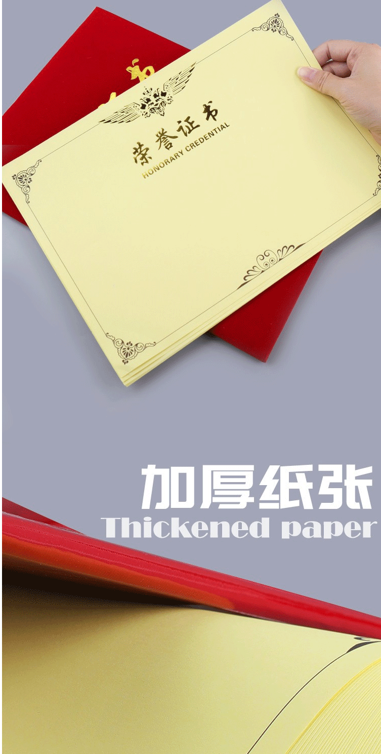 商品名称:得力8K(33.6*24cm)荣誉证书 烫金字内芯 证书内芯内页纸 50张/包 3231