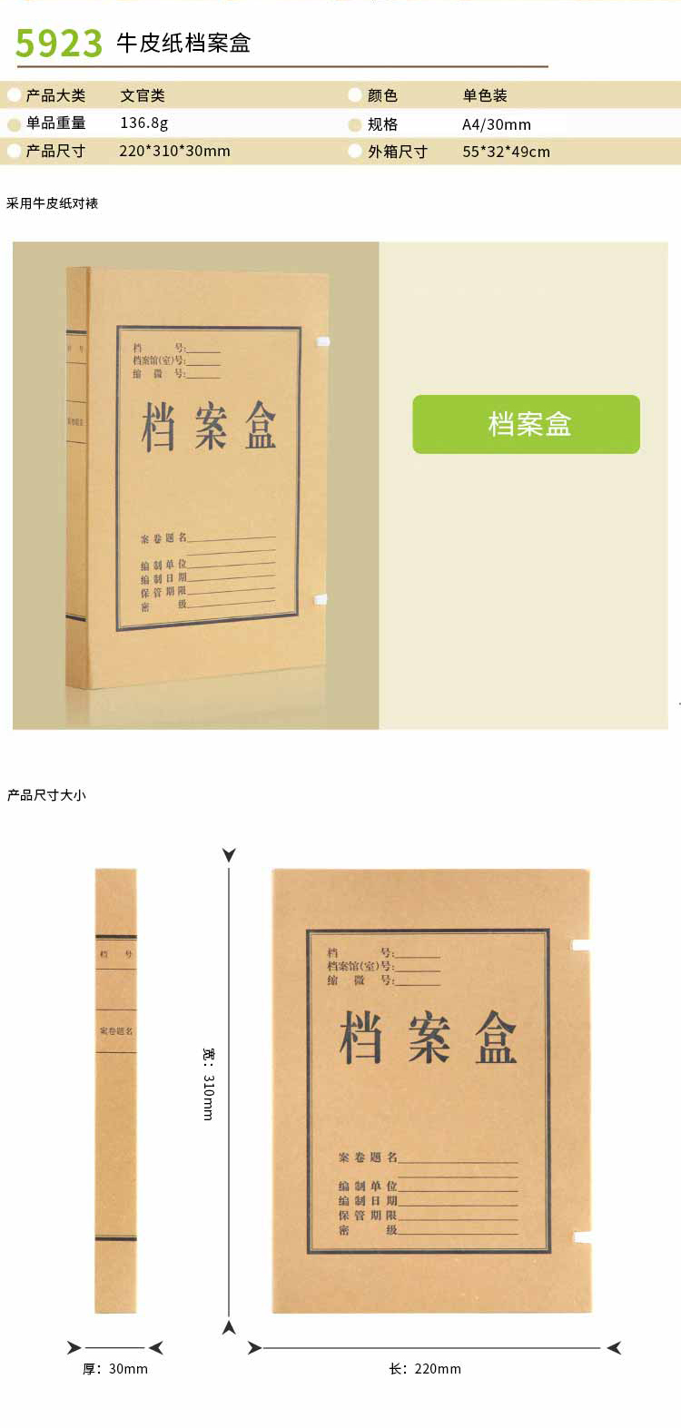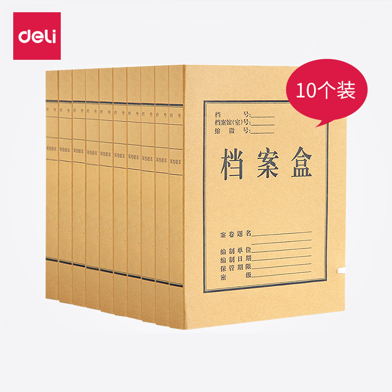 商品名称:得力(deli)30mm纯浆牛皮纸档案盒 久存耐用文件资料收纳盒 加厚党建材料整理5923 (10只/组)