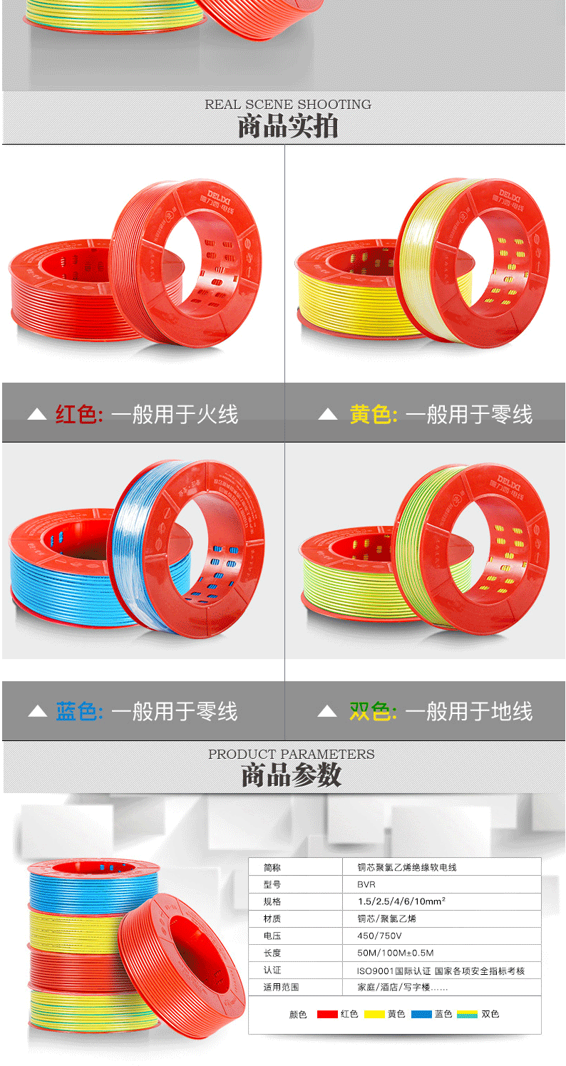 商品名称:德力西(DELIXI)电线电缆国标BVR4平方单芯多股铜芯线软线 蓝色【100米/卷】