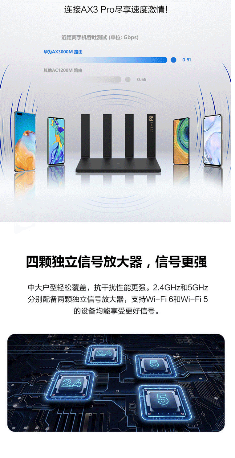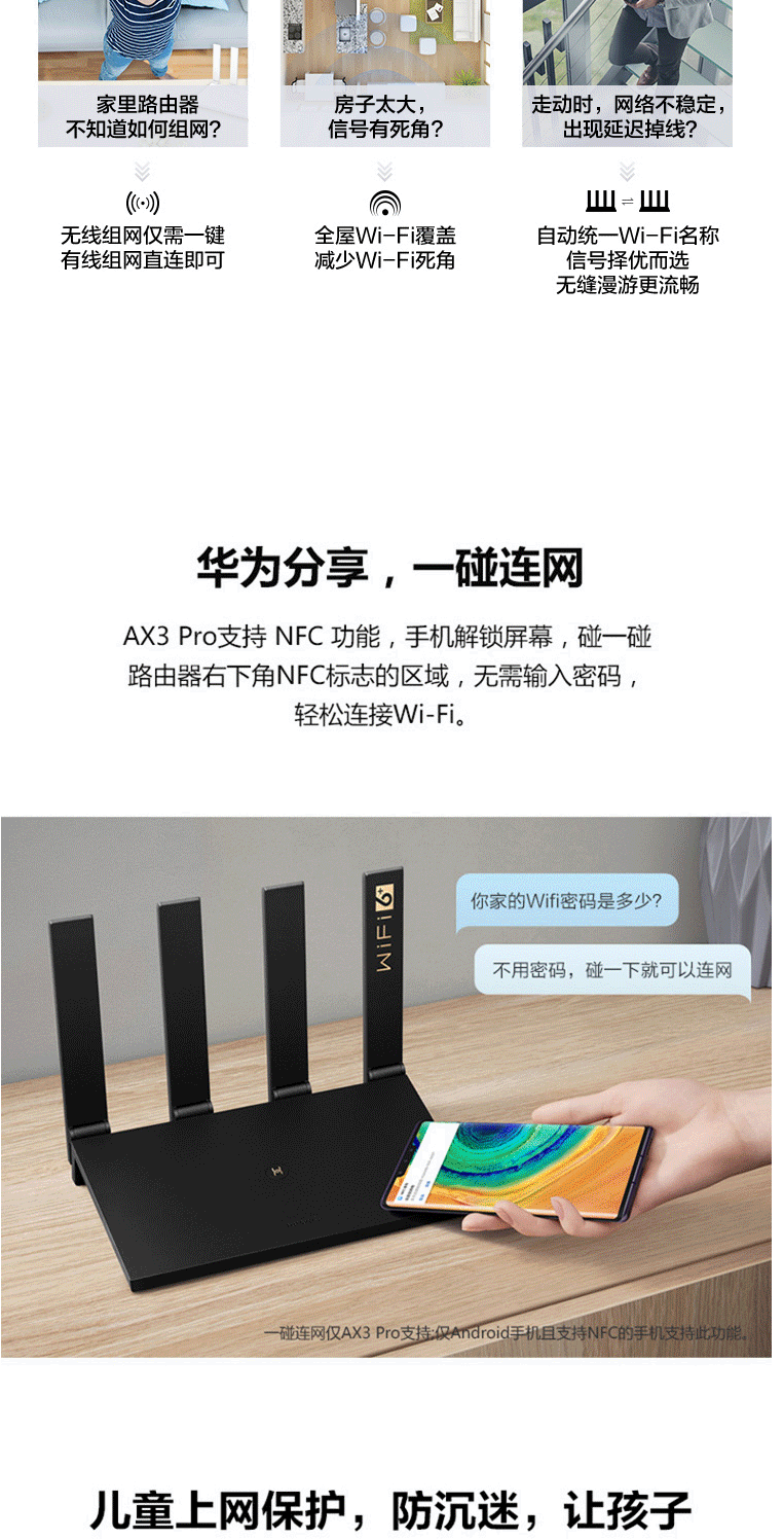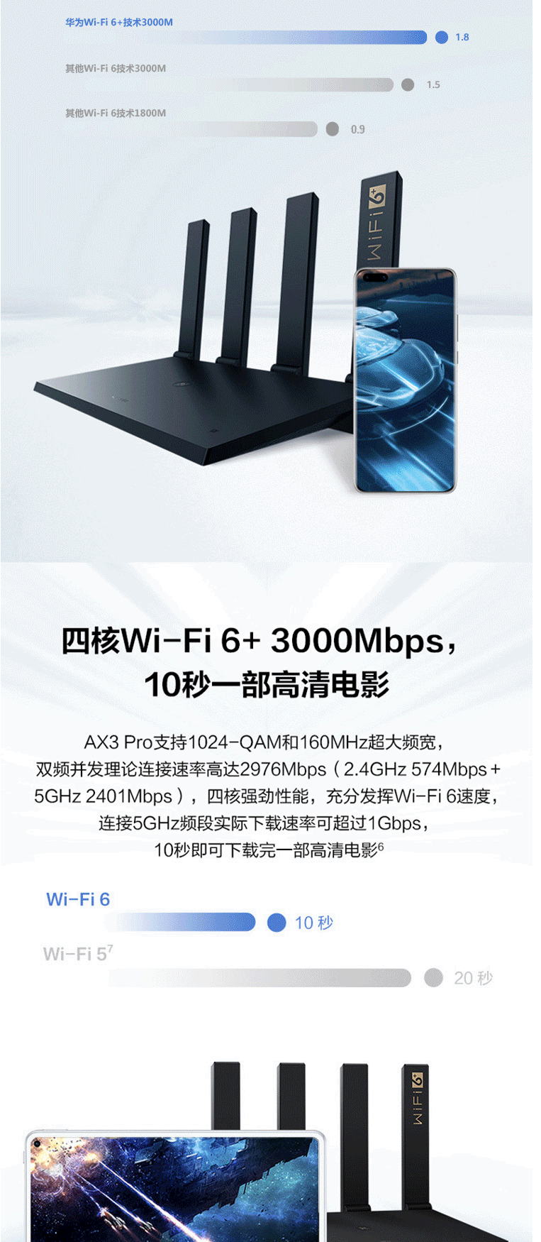 商品名称:华为路由AX3 Pro 千兆路由器 无线路由器 wifi6/凌霄四核/智能分频高速路由器
