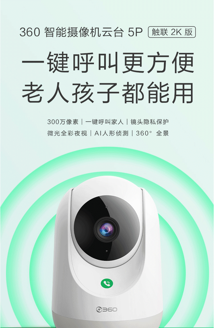 360 摄像头 智能无线监控摄像头 wifi高清全彩夜视双向通话360度旋转 5P触联2K版