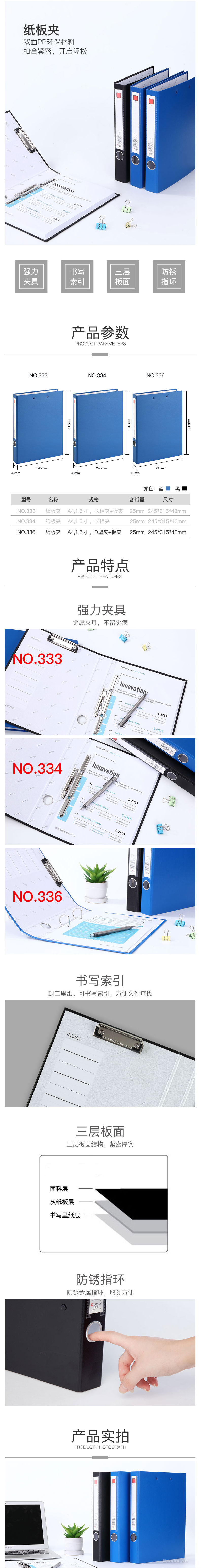 商品名称:齐心(Comix) NO.336 A4纸板文件夹 2孔D型资料夹+板夹 黑色