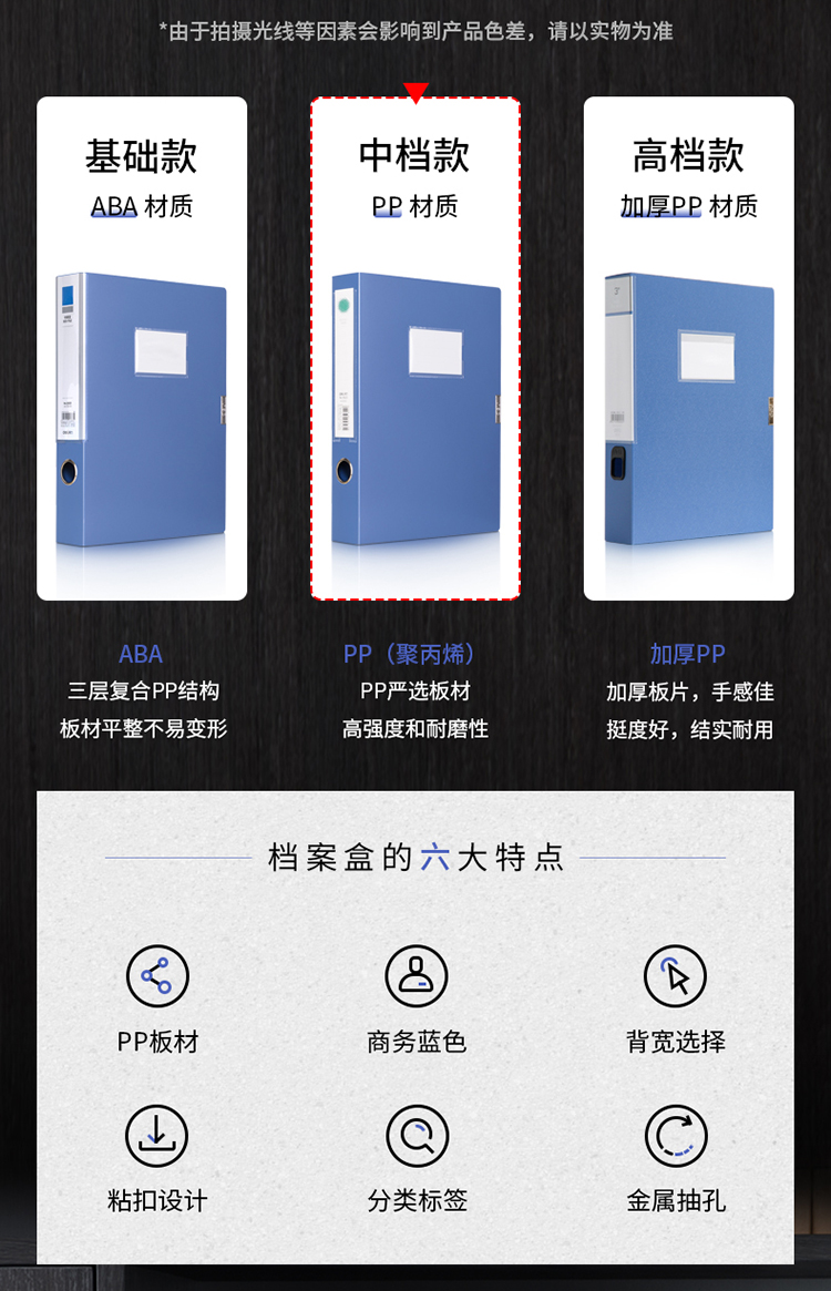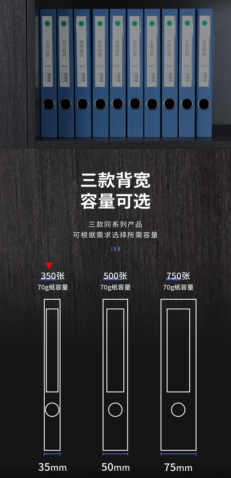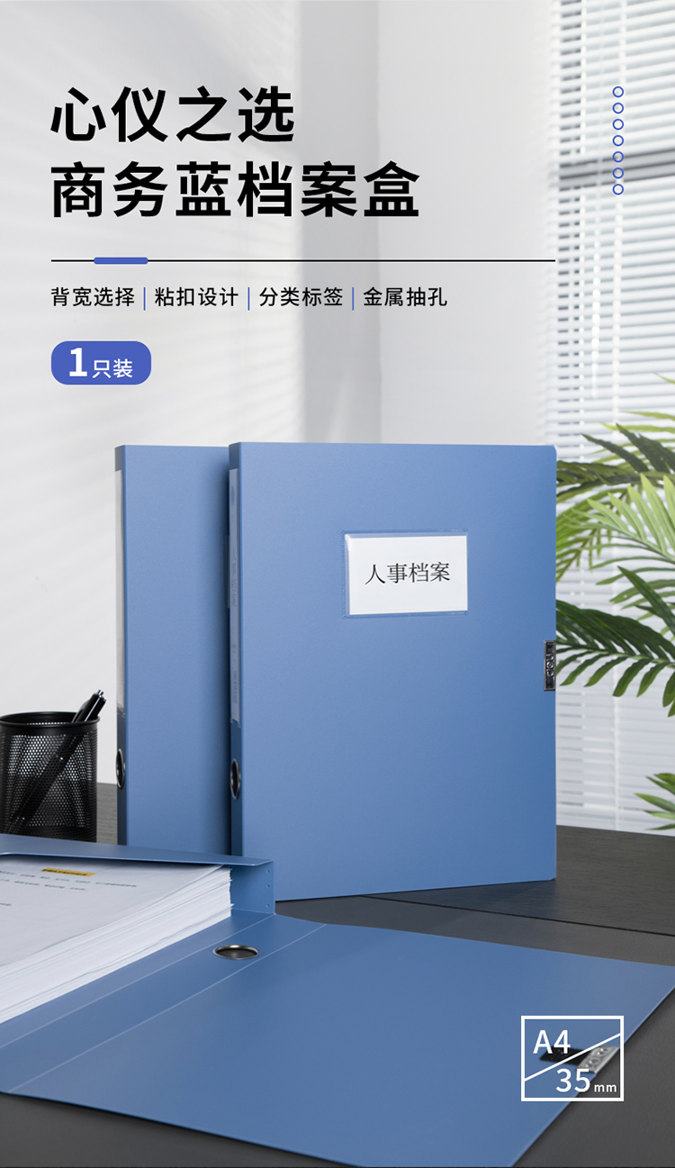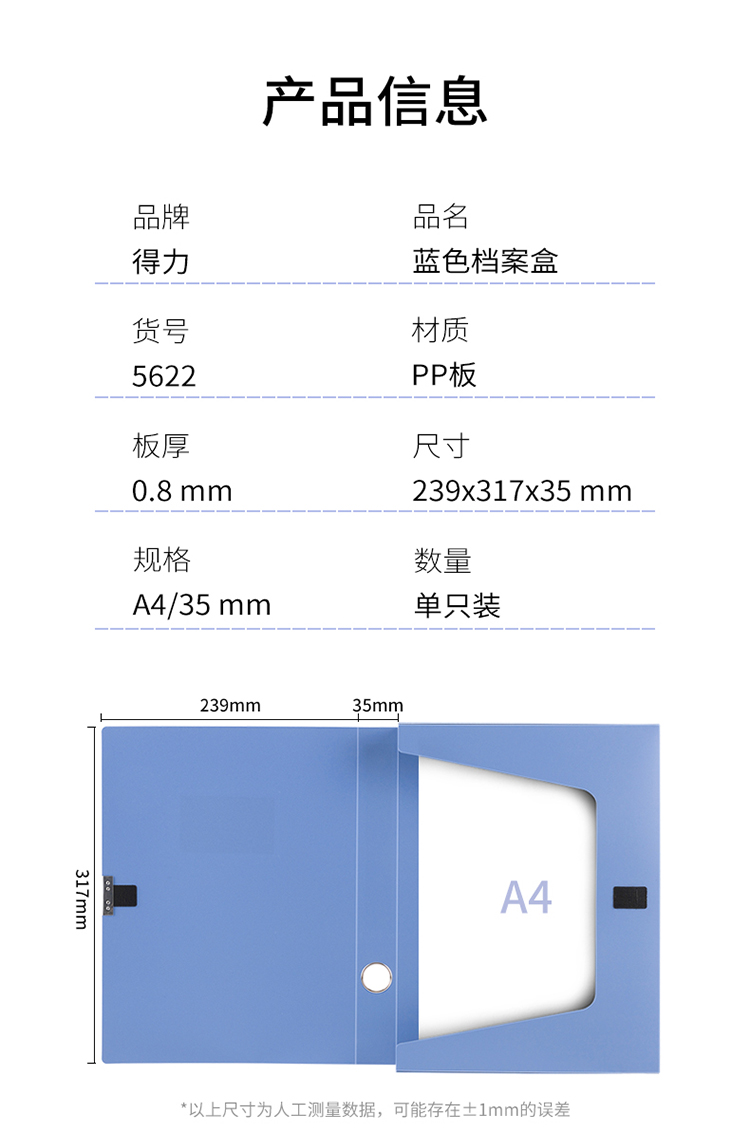 商品名称:得力(deli)35mmA4塑料档案盒 资料文件收纳盒 财务凭证盒5622蓝色 (单位:个)