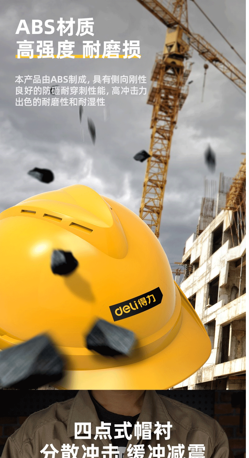 商品名称:得力(deli)加厚透气ABS头盔头帽 安全帽 黄色 DL525001
