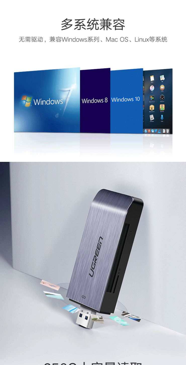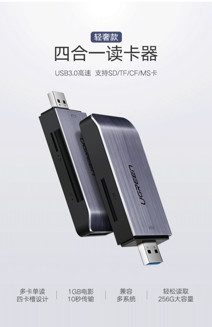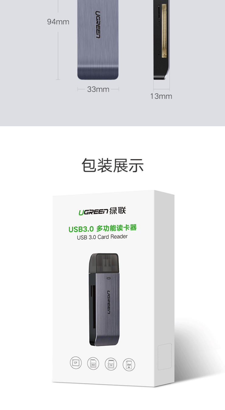 商品名称:绿联(UGREEN)USB3.0高速读卡器 多功能合一读卡器 50540