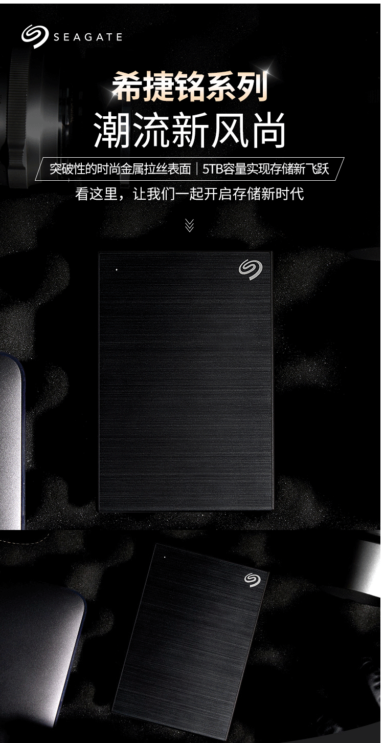 希捷(Seagate) 移动硬盘5TB USB3.0 铭 2.5英寸金属外壳 黑色STHP5000400
