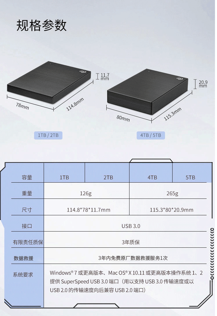 商品名称:希捷(Seagate) 移动硬盘5TB USB3.0 铭 2.5英寸金属外壳 黑色STHP5000400