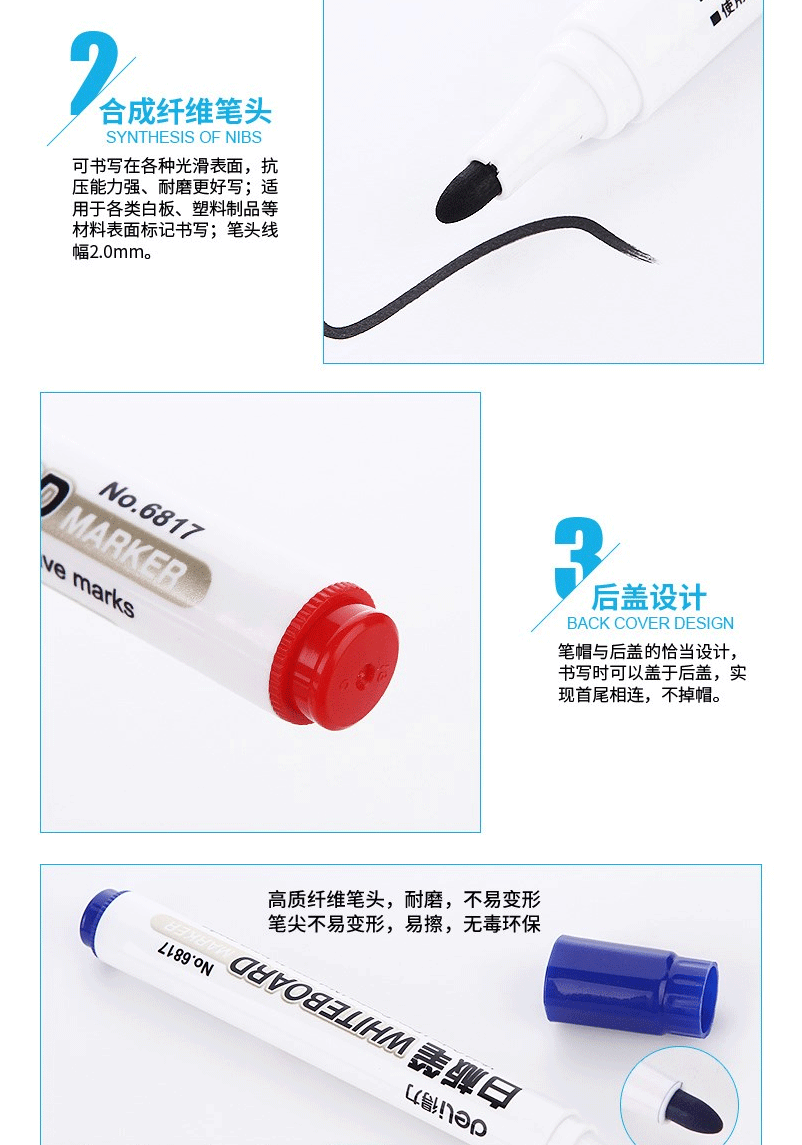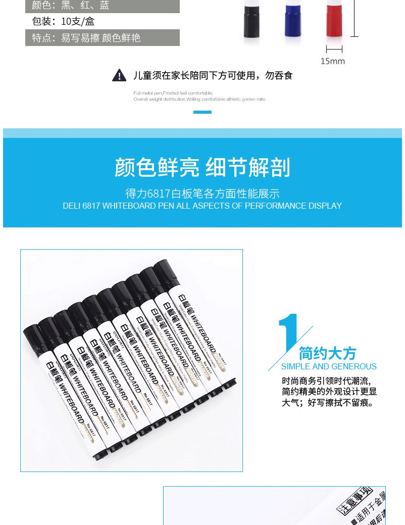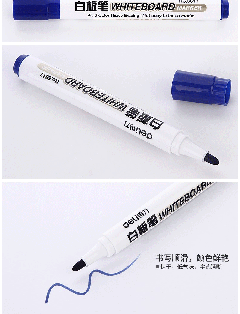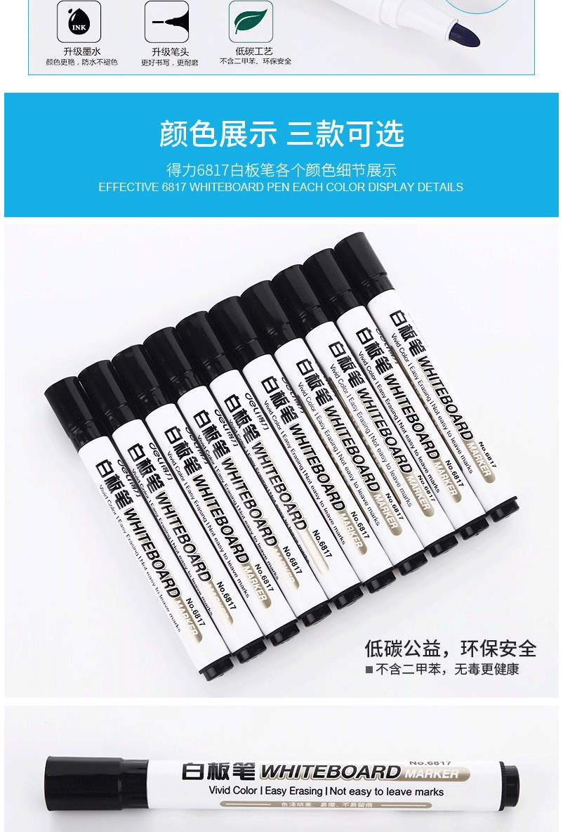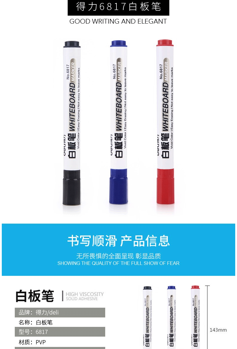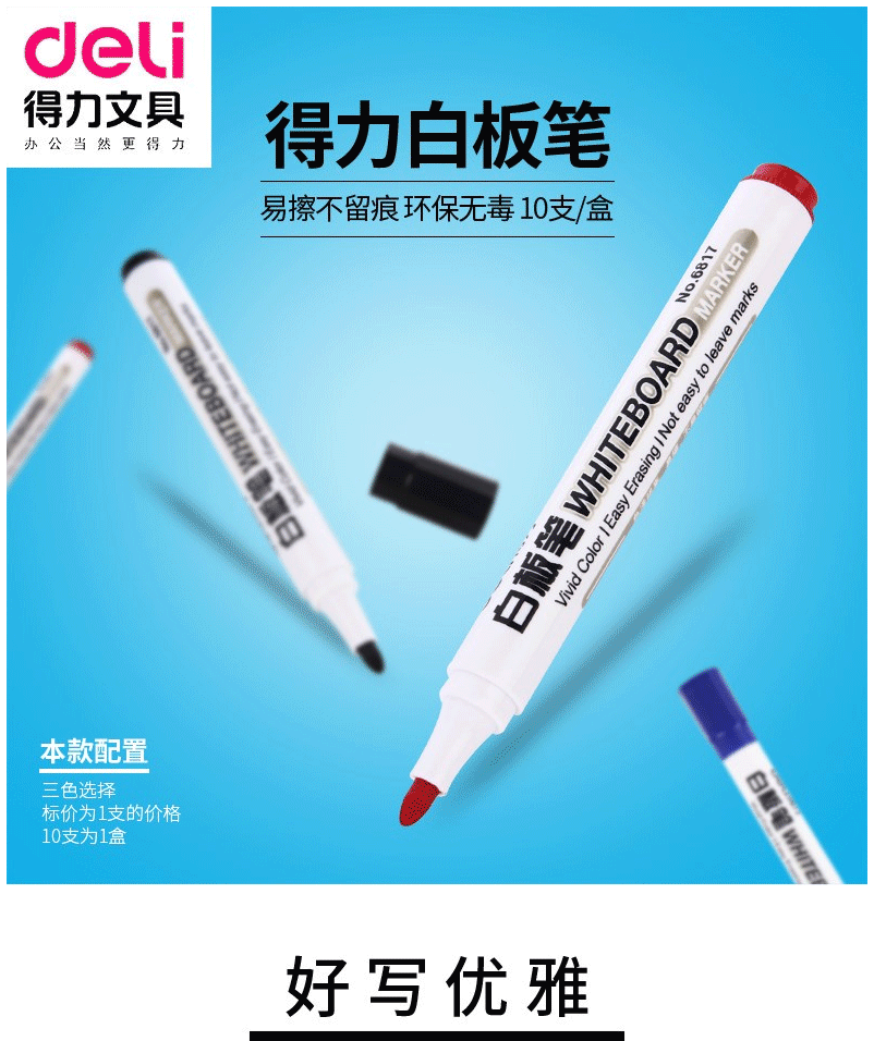 商品名称:得力 S515白板笔 黑色(10支/盒)