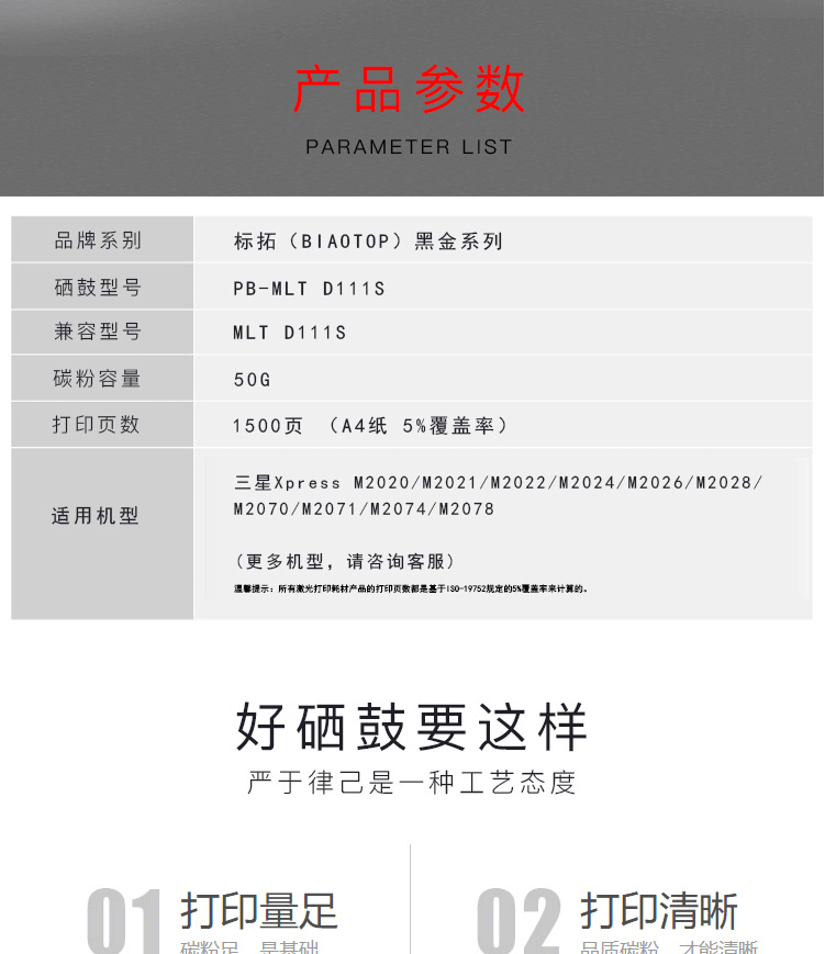 商品名称:标拓 (Biaoto) MLT D111S硒鼓适用三星M2070/M2020/M2020W/M2021/M2021W/M2022打印机 北极熊版