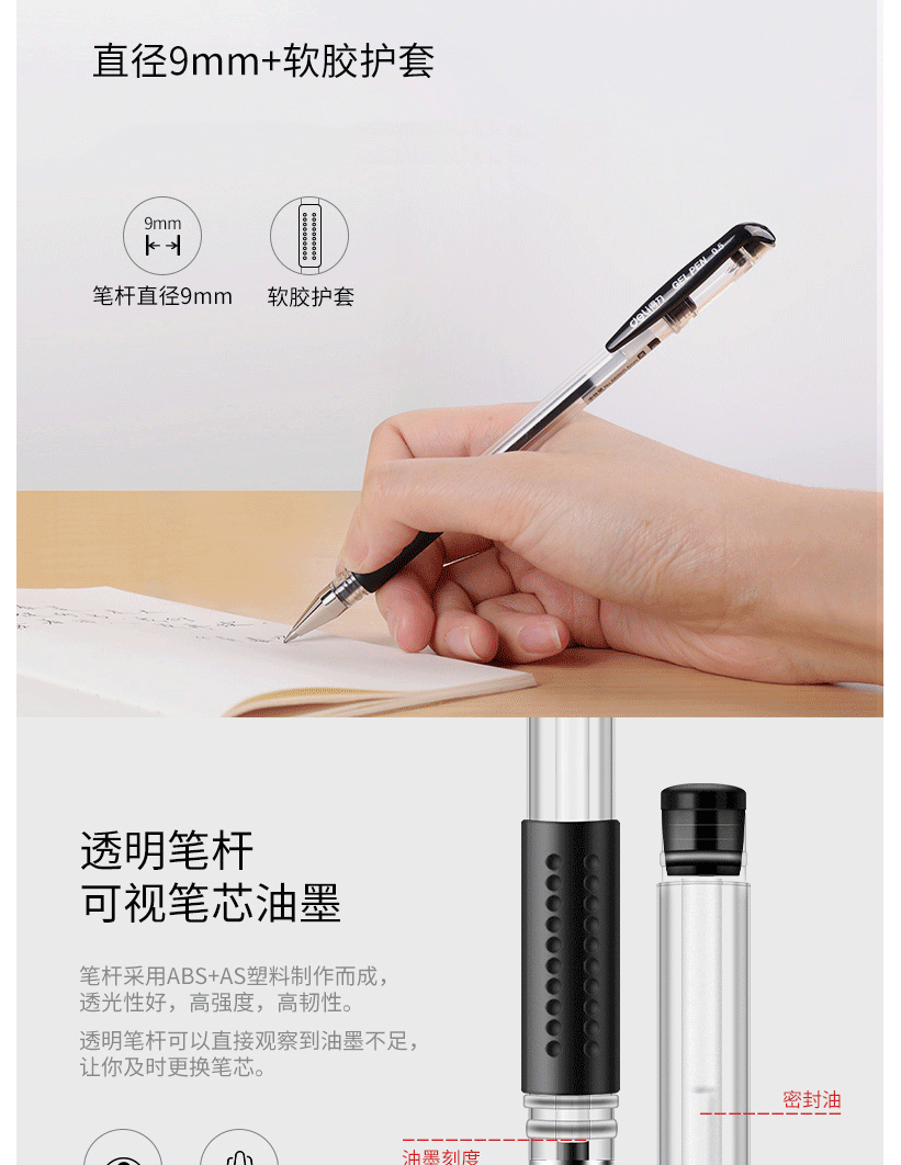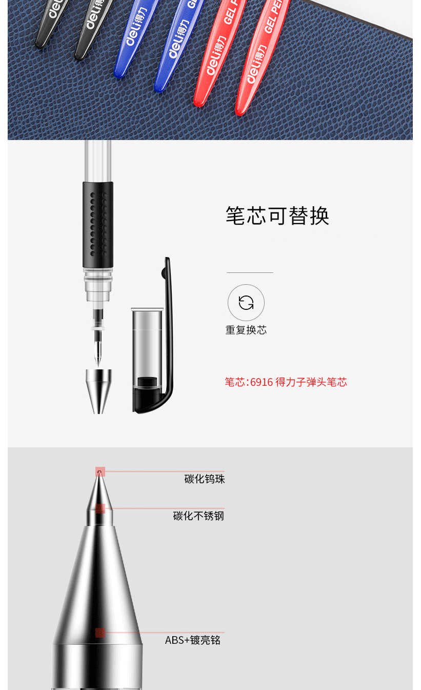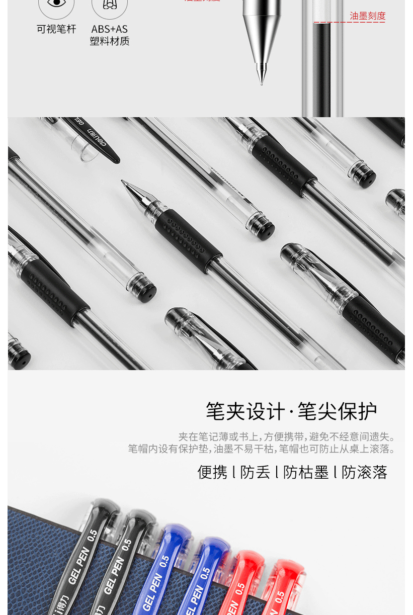 得力(deli) 中性笔碳素水笔0.5mm 黑色/支 6600ES