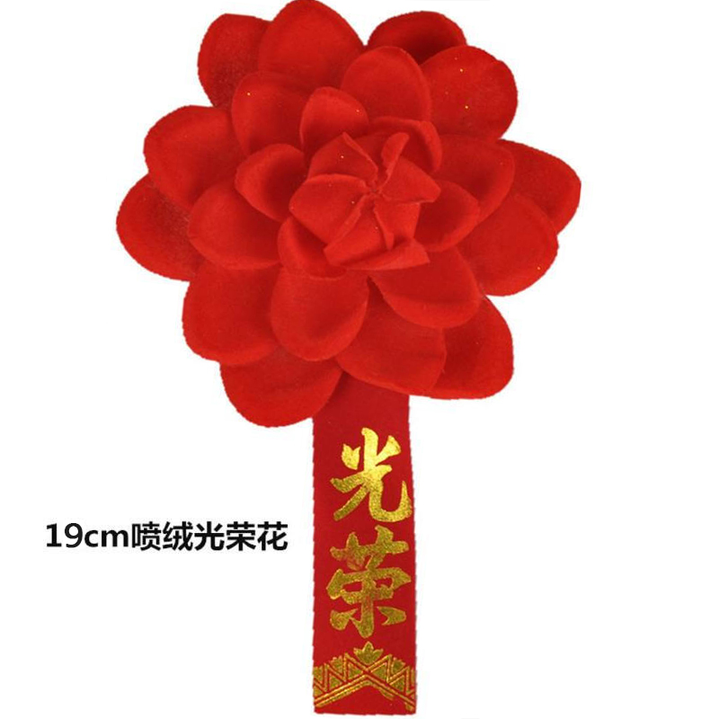 喷绒表彰大红花 光荣胸花 新兵入伍 颁奖光荣红花 19cm