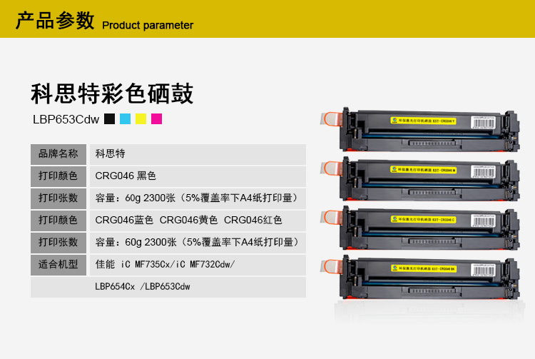 商品名称:科思特CRG046硒鼓 适用佳能 Canon iC MF735Cx/iC MF732Cdw/LBP654Cx /LBP653Cdw 蓝色 专业版