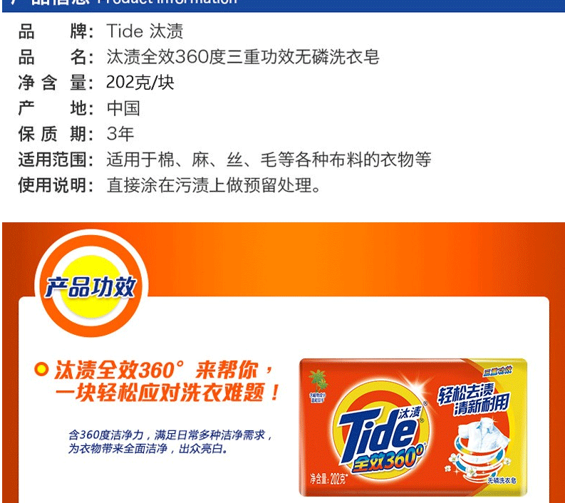 商品名称:汰渍洗衣皂 轻松去渍肥皂 全效202g