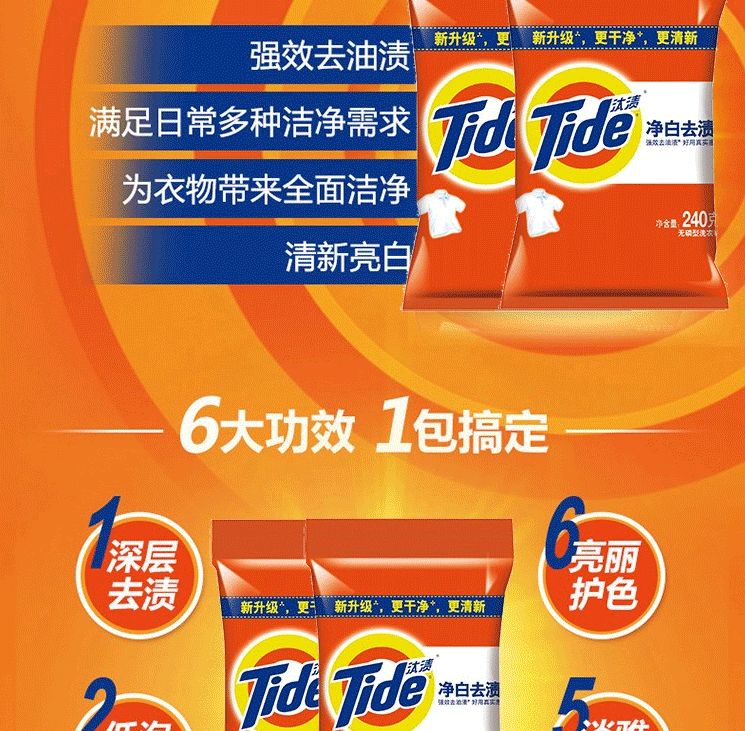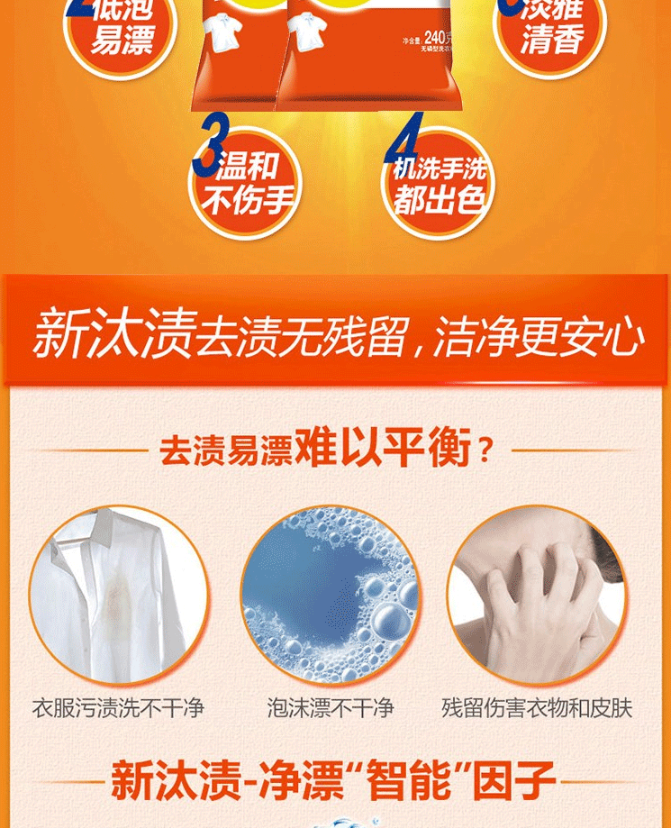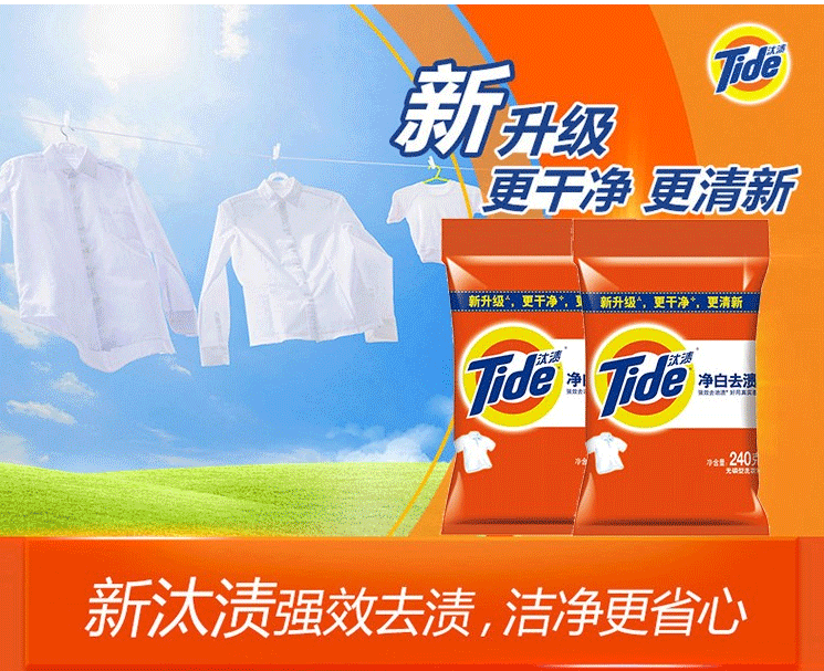 商品名称:汰渍洗衣粉净白去渍无磷洗衣粉240g 自然清新型