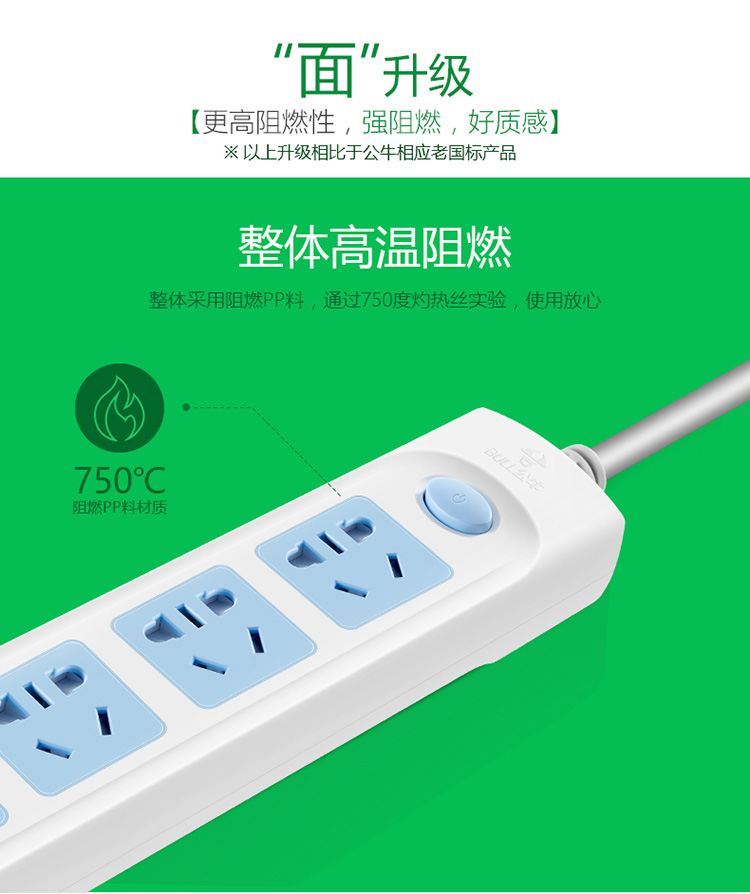 商品名称:公牛新国标 GN-602 3米-5位插排 总控开关3米电源插座
