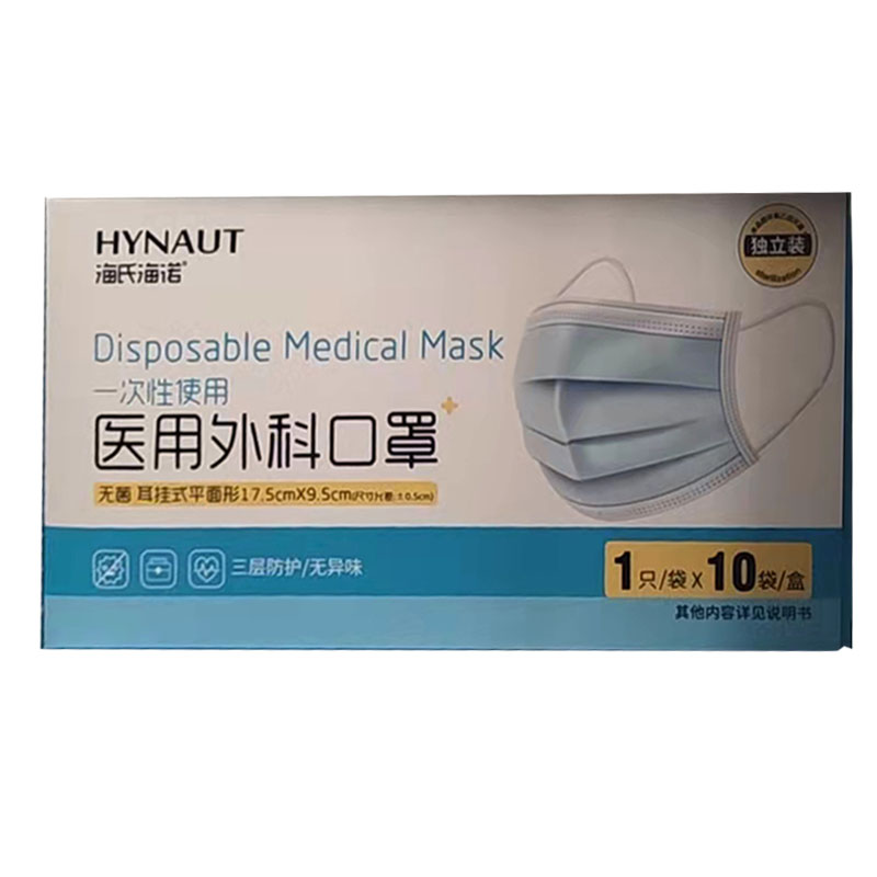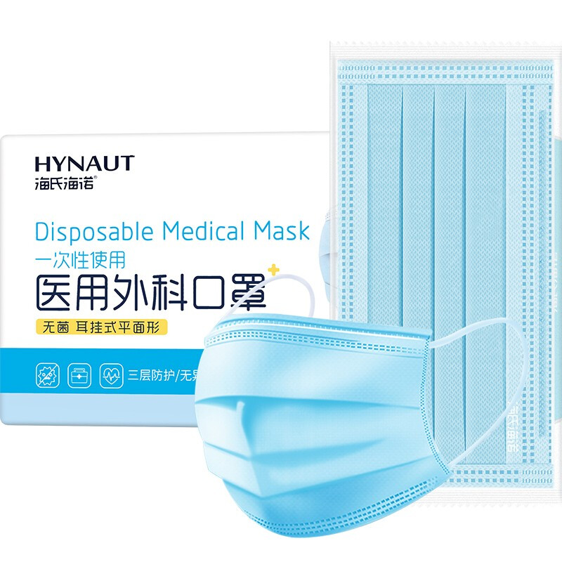 商品名称:海氏海诺 医用口罩【无菌级 独立包装】一次性口罩挂耳3层透气防护口罩男 10只/盒-蓝色 口罩