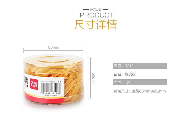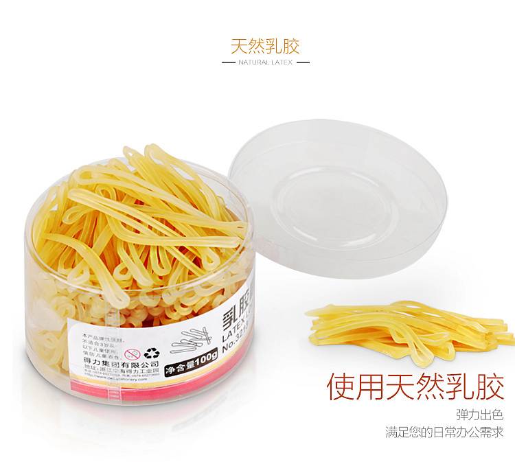 商品名称:得力(deli)100g办公耐用乳胶圈/橡皮筋/橡胶圈/牛皮筋 3213