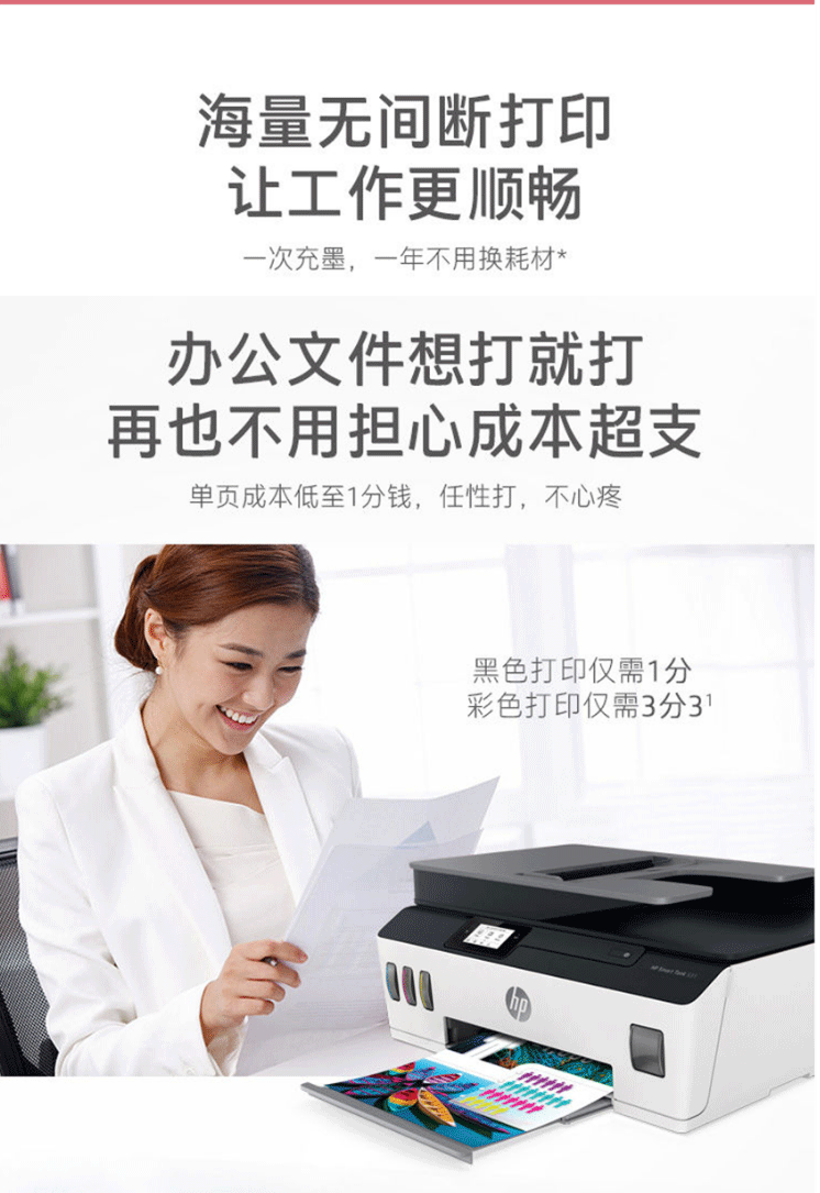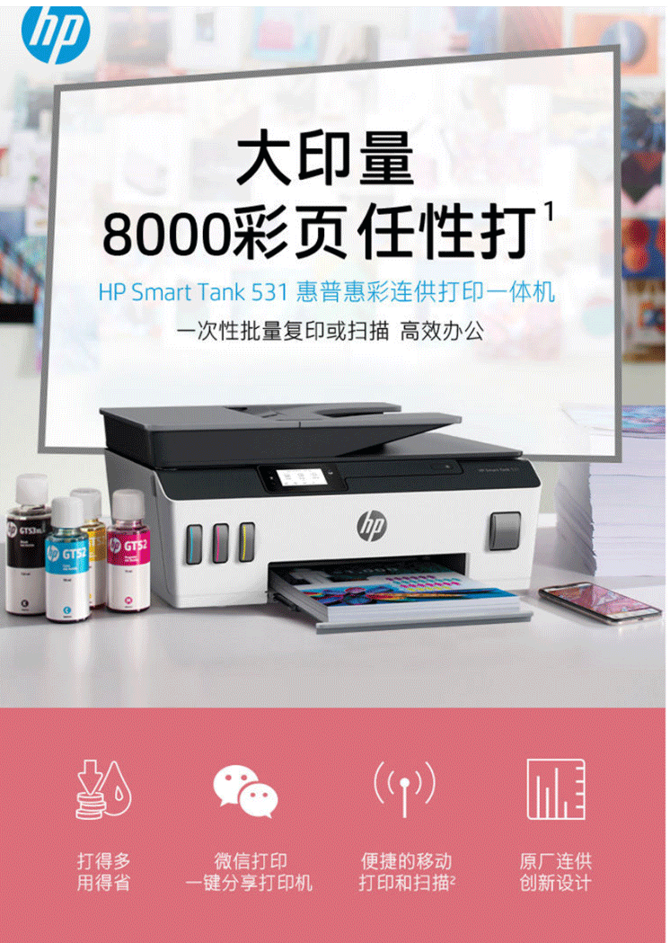 商品名称:惠普 HP Tank531 A4彩色连供无线打印一体机三合一彩色打印机
