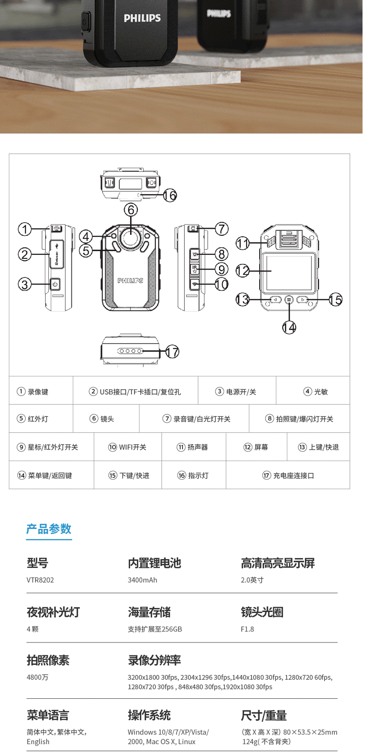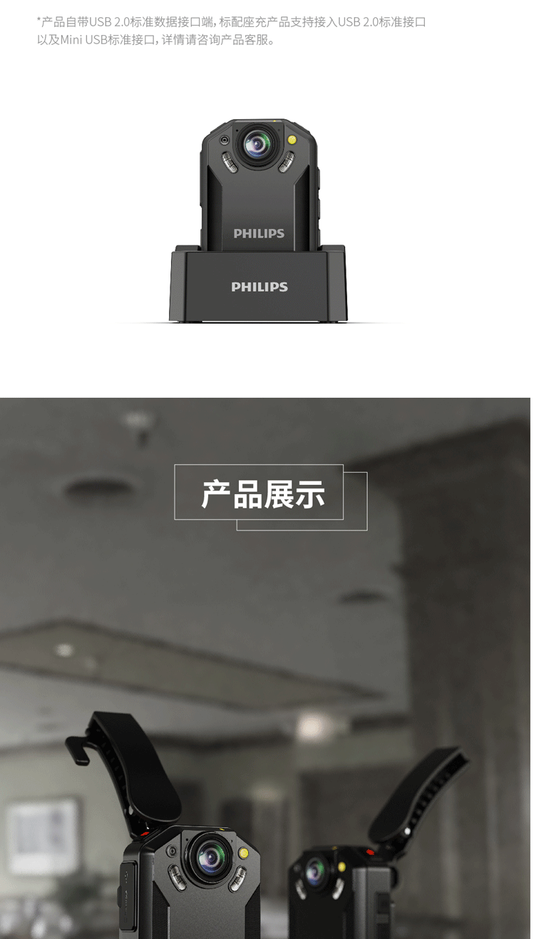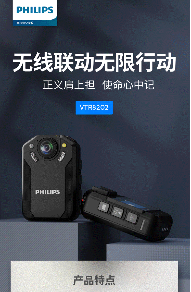 商品名称:飞利浦 PHILIPS VTR-8202随身执法记录仪 2.5K高清红外夜视微型 便携执法仪手机互联128G