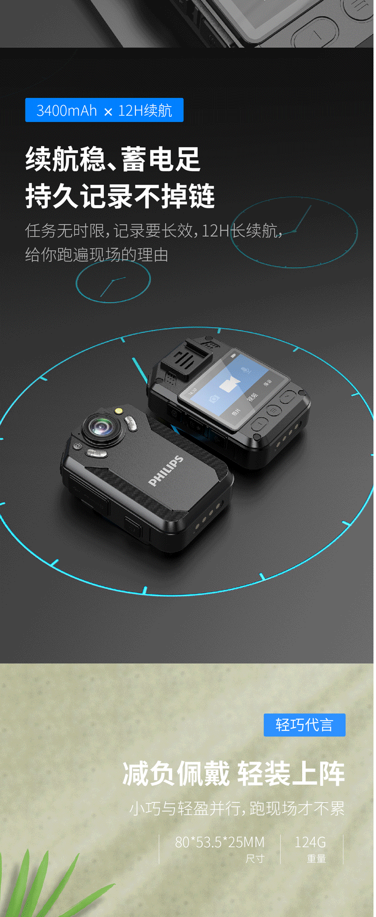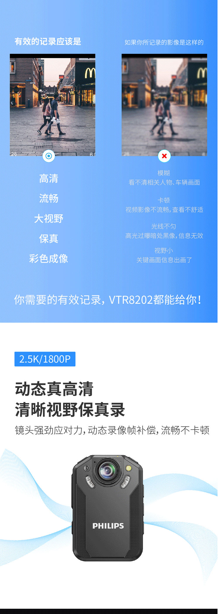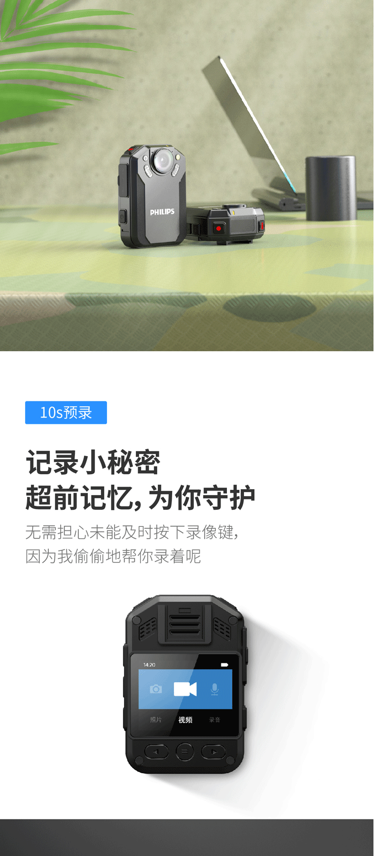商品名称:飞利浦 PHILIPS VTR-8202随身执法记录仪 2.5K高清红外夜视微型 便携执法仪手机互联128G
