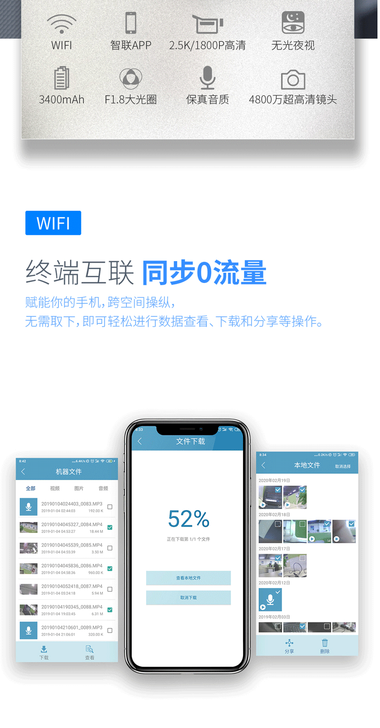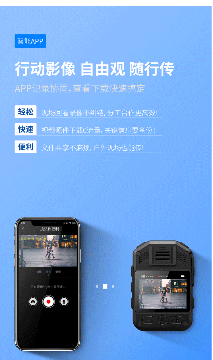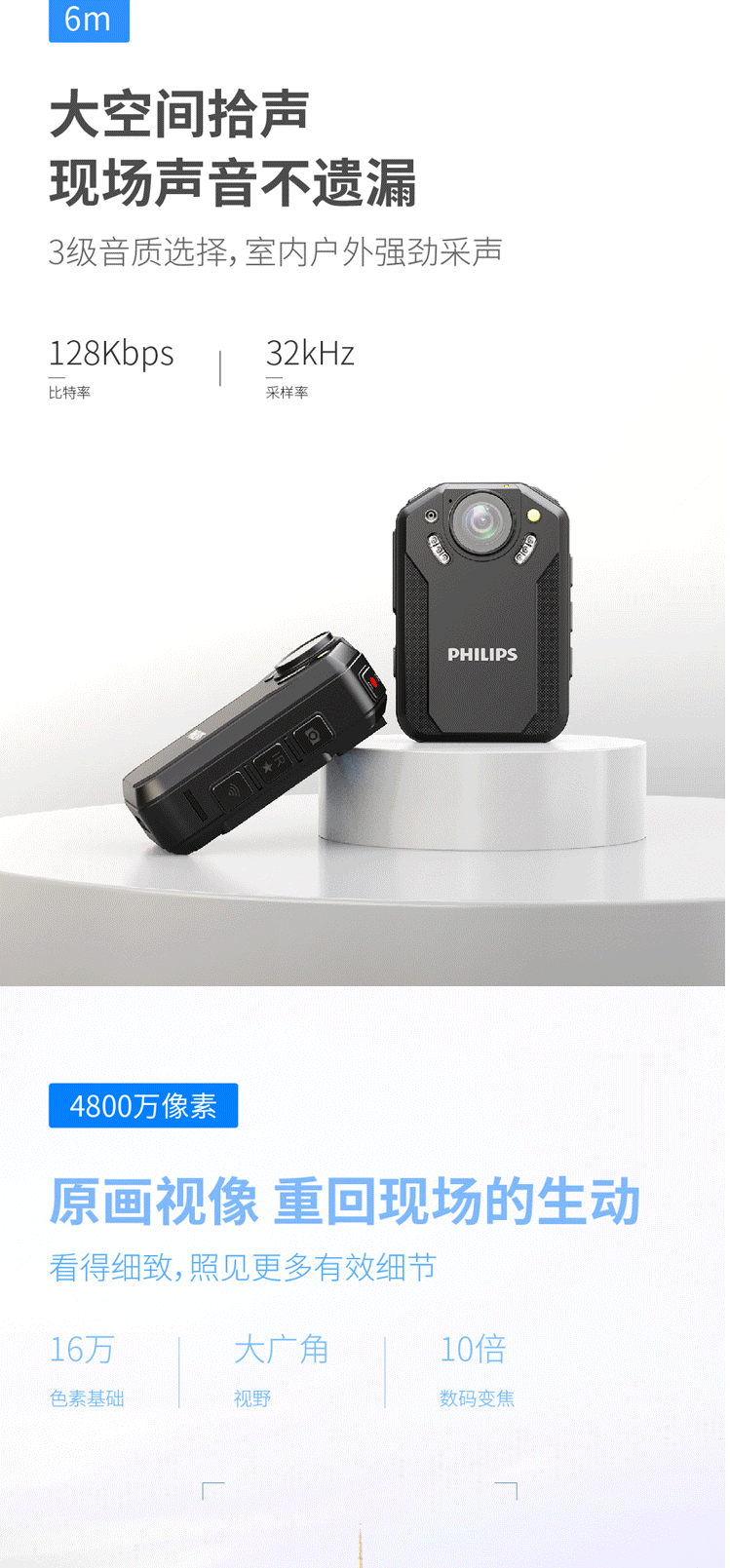 飞利浦 PHILIPS VTR-8202随身执法记录仪 2.5K高清红外夜视微型 便携执法仪手机互联128G