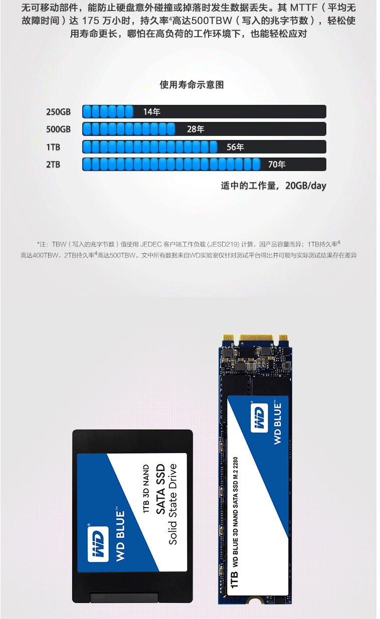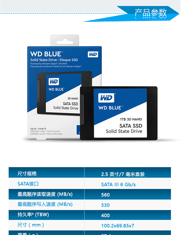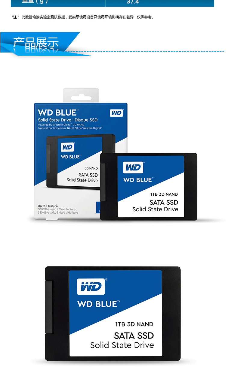 商品名称:西部数据(WD)1TB SSD固态硬盘 SATA3.0接口 Blue系列
