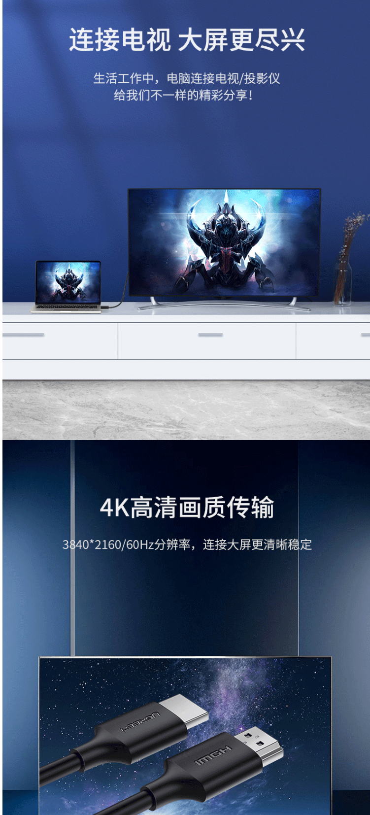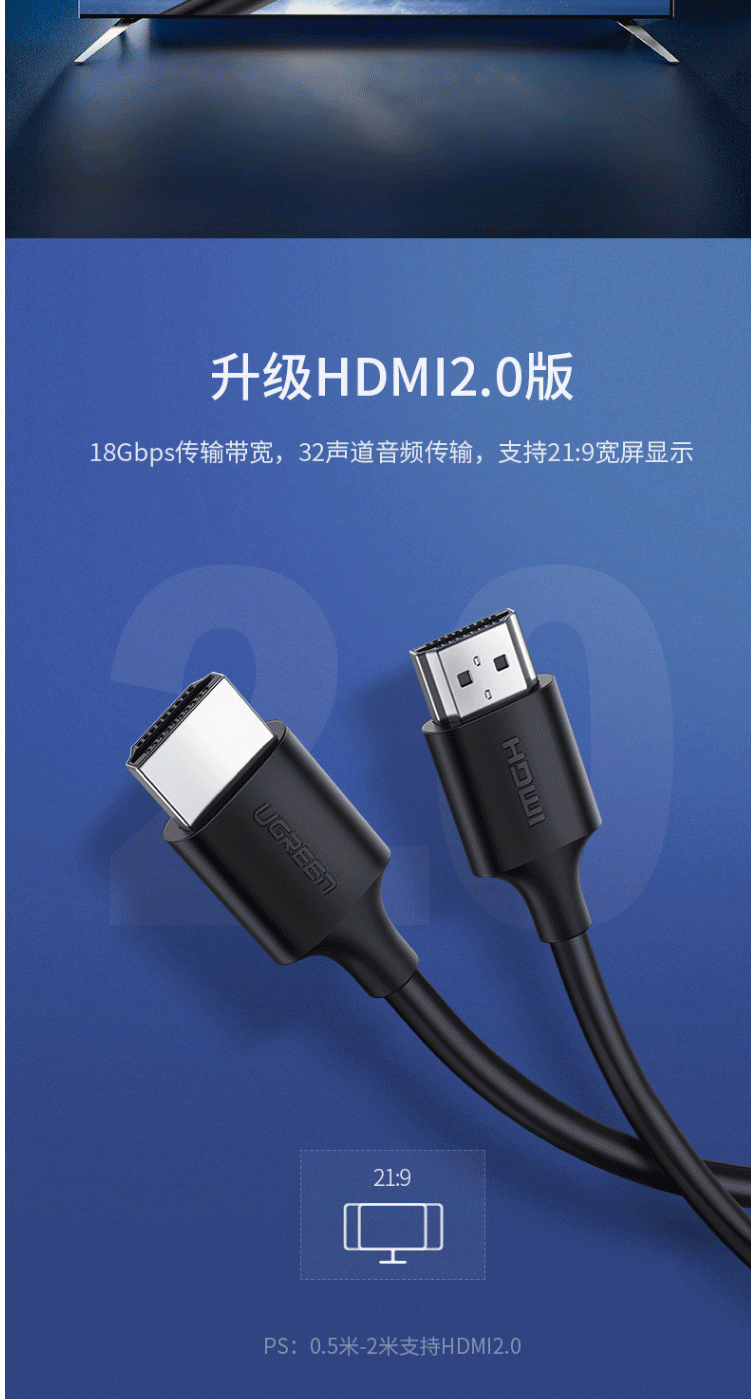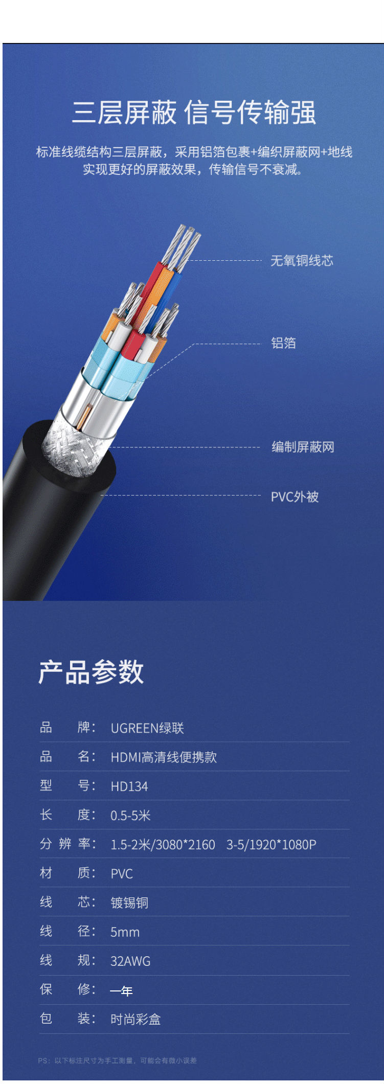 商品名称:绿联(UGREEN)HDMI线 高清数字线 5米 60177
