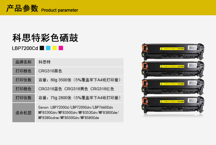 适用机型:Canon LBP 7200/7600/7660/7680/MF 8330/8340/8350/8360/8380/8580Cdw/8570/8550/8530/726Cdw/722Cdw/729Cdw/724Cdw/728Cdw/729Cx/727Cdw/725Cdn