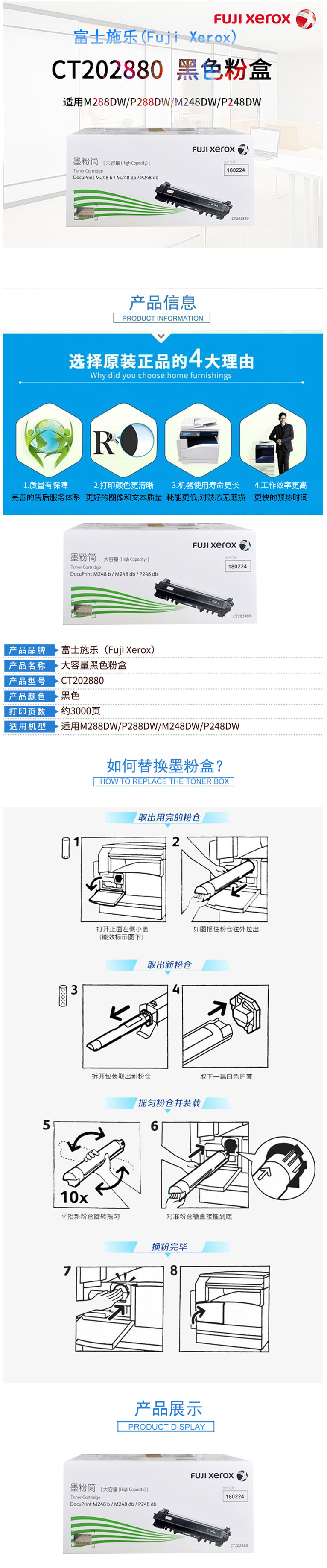 商品名称:富士施乐(Fuji Xerox)CT202880 原装大容量黑色粉盒 (适用M288DW/P288DW/M248DW/P248DW)