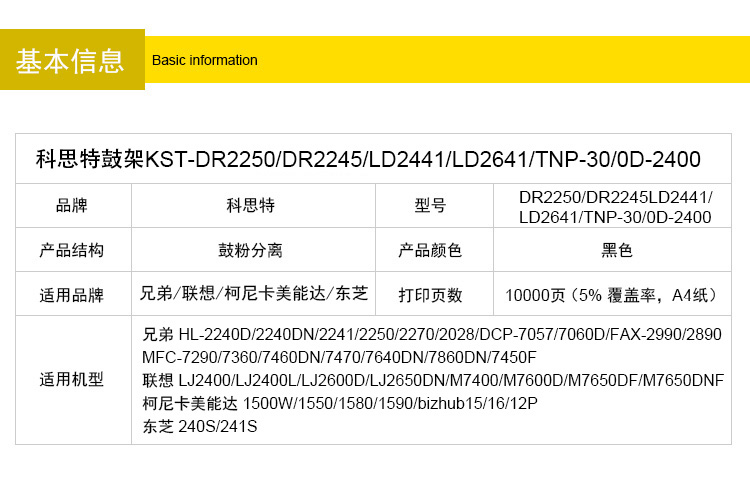 商品名称:科思特DR2250鼓架 适用兄弟DR2245硒鼓 联想LD2441 东芝TNP-30 柯美2400 专业版