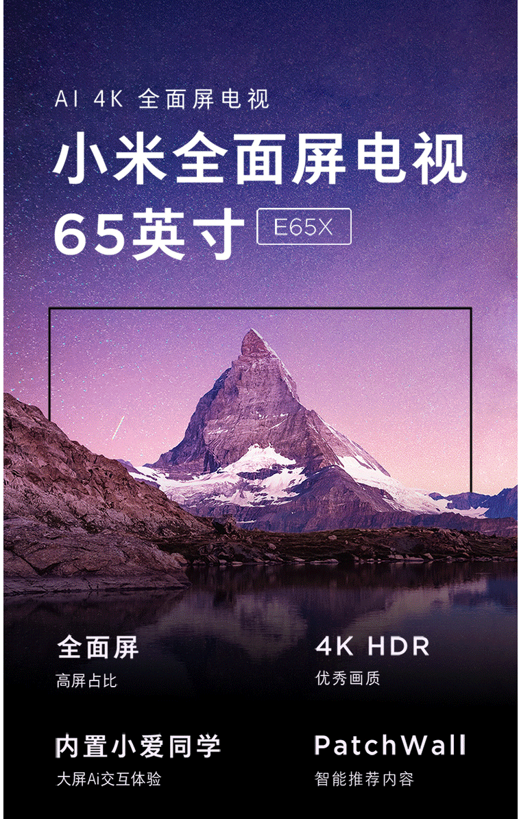 小米电视E65X 65英寸 全面屏 4K超高清HDR 2+8GB AI人工智能液晶网络平板电视 L65M5-EA(含旋转支架含安装)