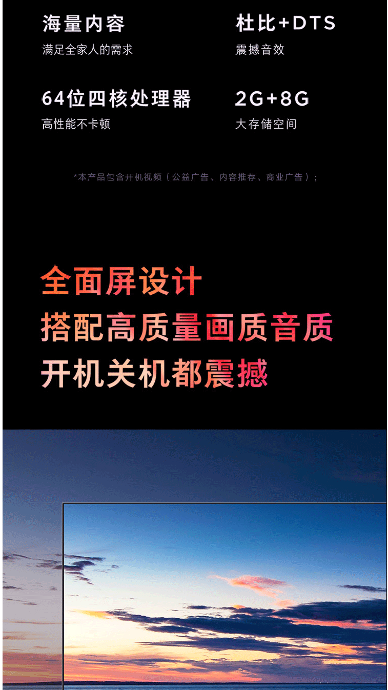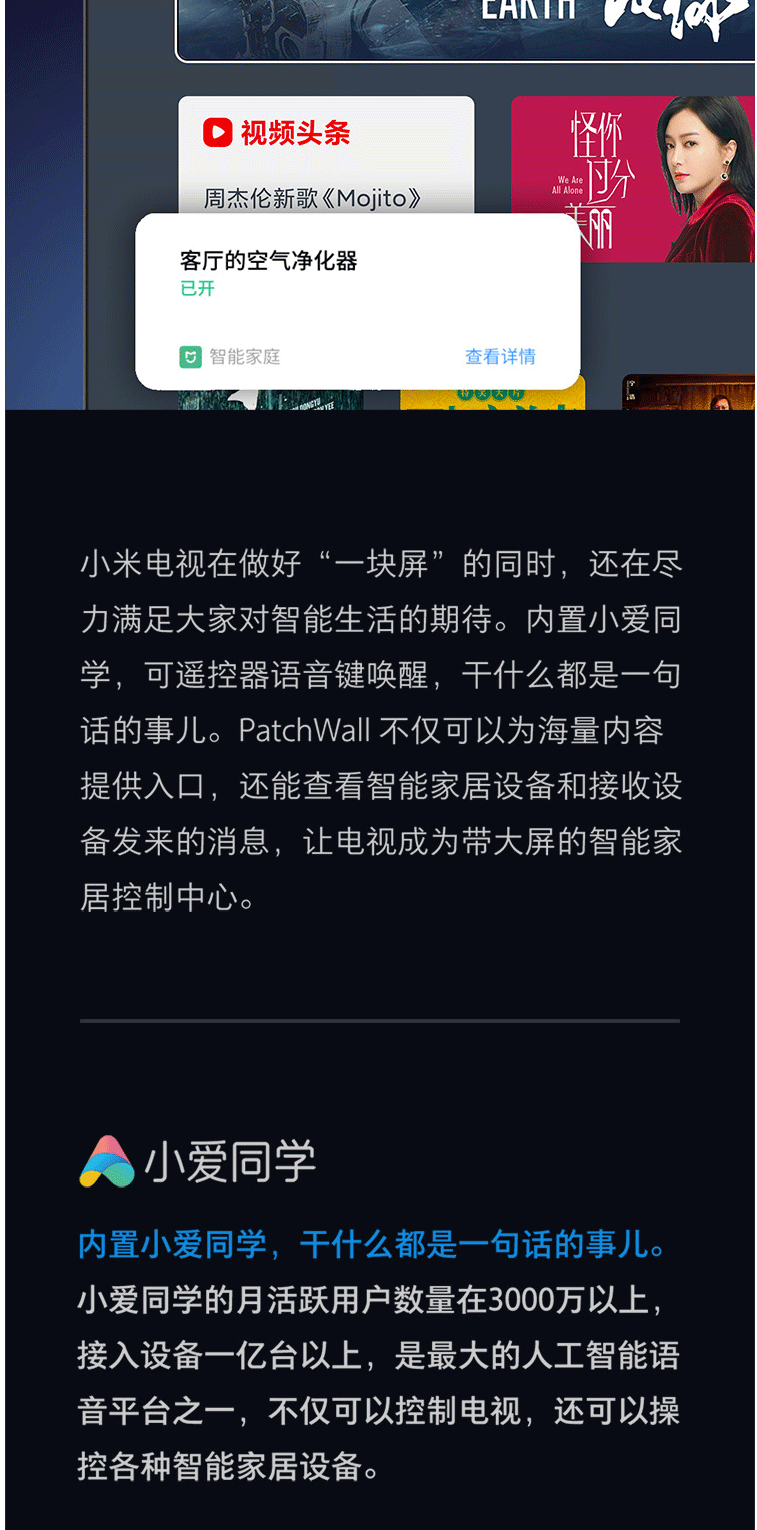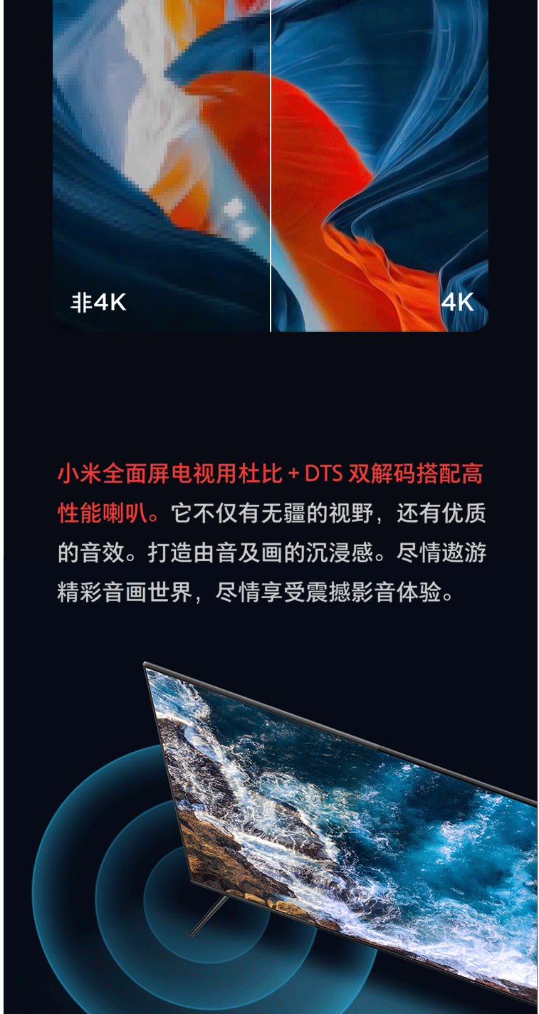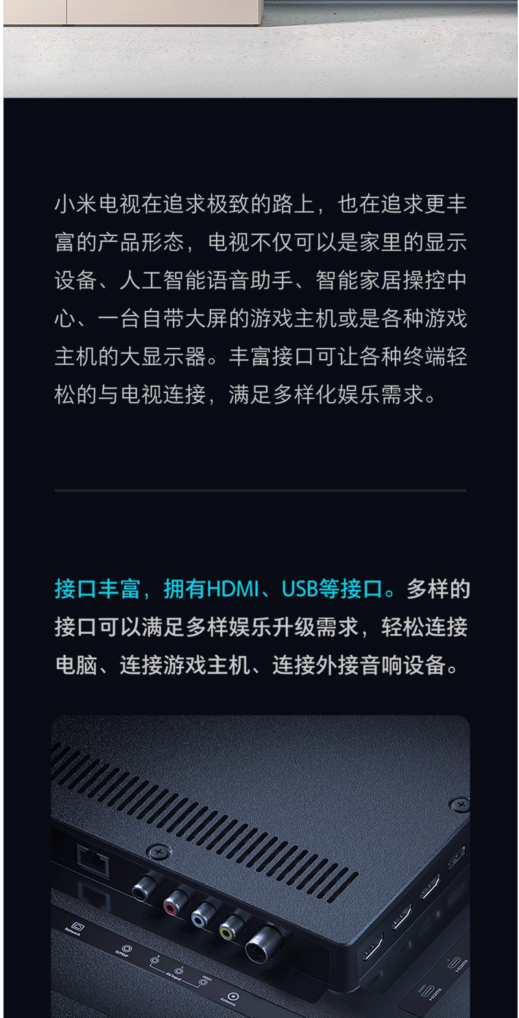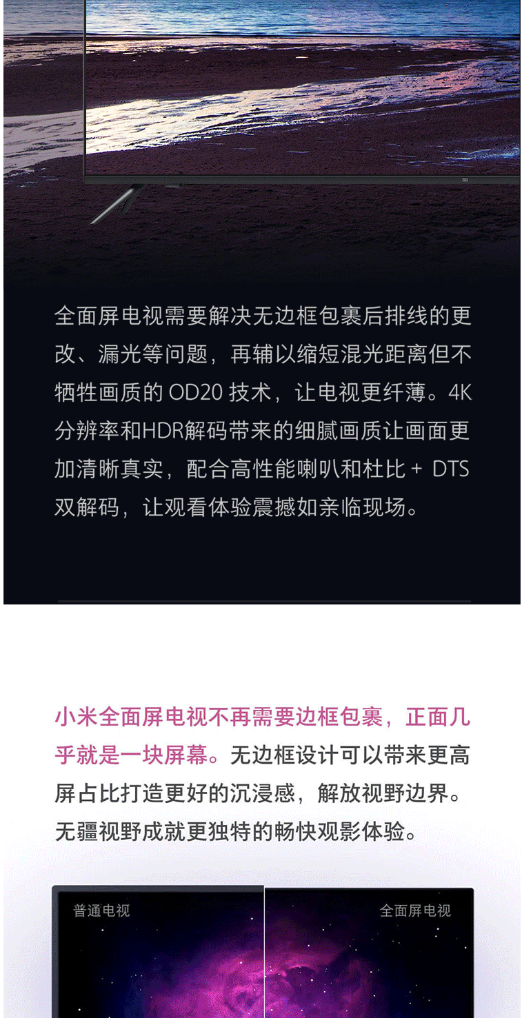 商品名称:小米电视E65X 65英寸 全面屏 4K超高清HDR 2+8GB AI人工智能液晶网络平板电视 L65M5-EA(含旋转支架含安装)