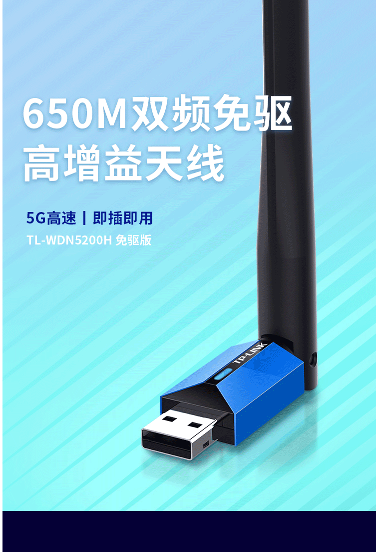 商品名称:TL-WDN5200H免驱版 AC650双频5G无线网卡