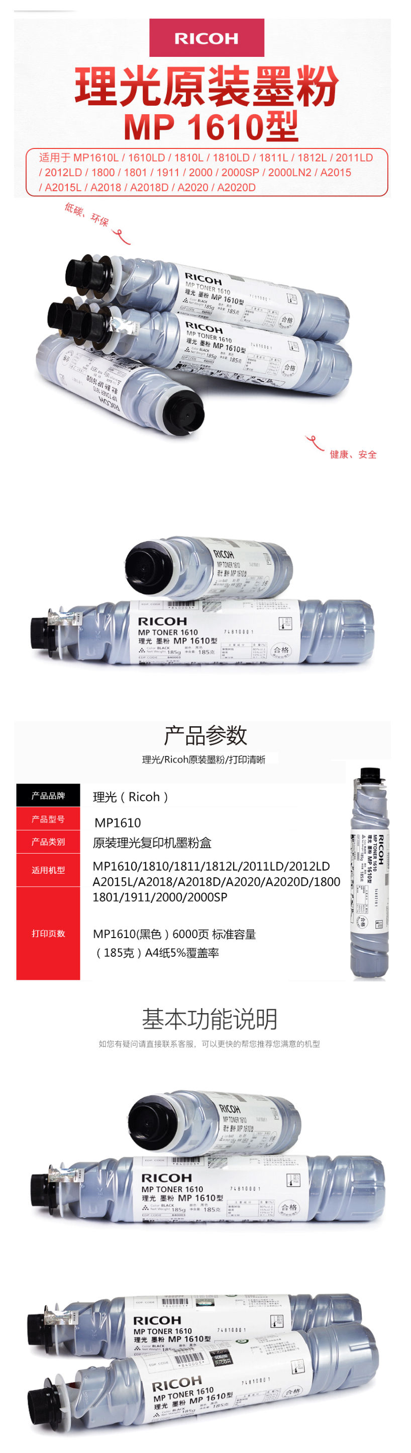 商品名称:理光(Ricoh) MP1610型黑色墨粉碳粉适用于MP1610L/MP1610LD