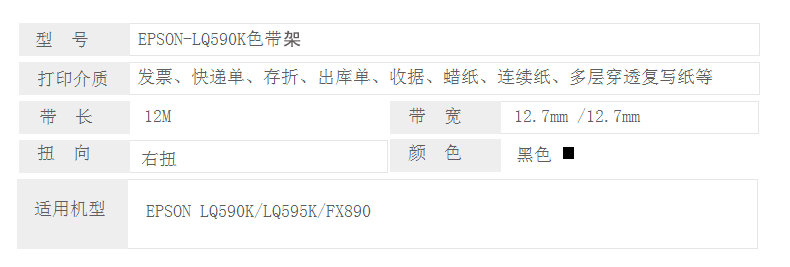 商品名称:凯欣KX-LQ590K色带架(适用爱普生EPSON FX890 LQ590K LQ590KII LQ595K S015337 C13S015590打印机色带架含芯)