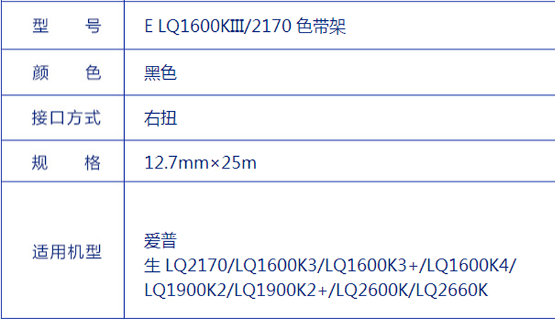 商品名称:凯欣KX-1600KIII色带架(适用爱普生 LQ1200K/2170/2600K/1900K2/1600K4/2070/1900KIII/2080/)