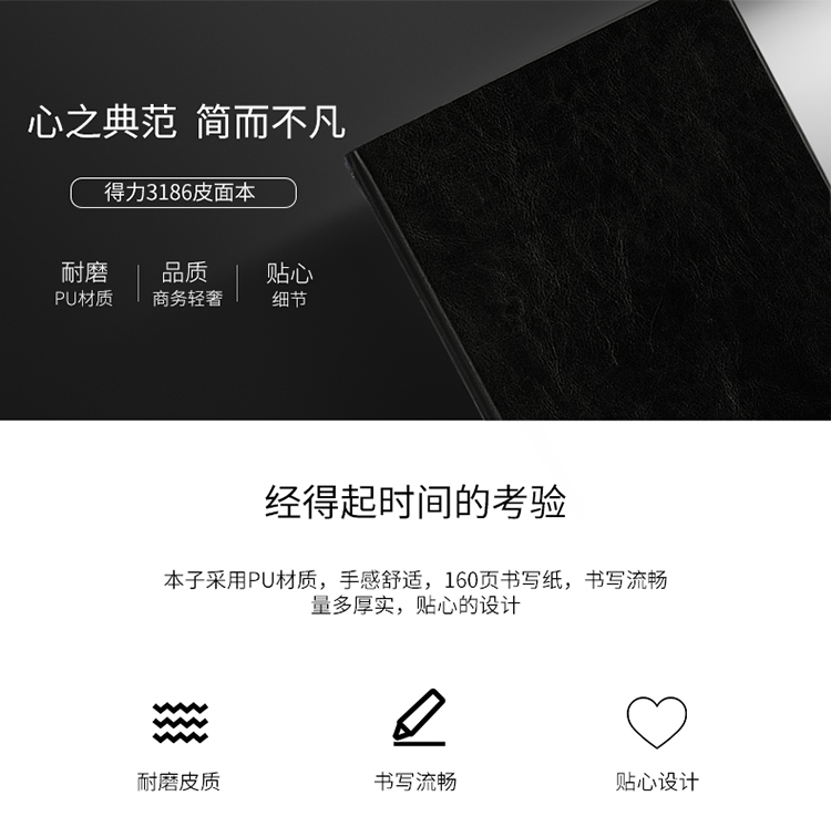 商品名称:得力(deli)25K160张加厚商务皮面本 会议记事本笔记本 3186棕色 (单位:本)