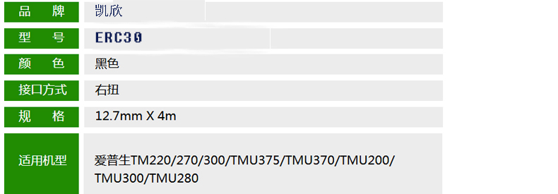商品名称:凯欣KX-ERC30色带芯(适用爱普生ERC34 ERC38 TM200 TM260 TM267 TM270 TM300 ERC30打印机)