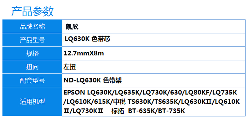 商品名称:凯欣KX-LQ630K色带芯(适用爱普生EPSON LQ630K 635K 730K 735K 80KF 610K 615K 80KFII色带芯)
