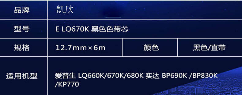 商品名称:凯欣KX-LQ670K色带芯(适用EPSON LQ670K 670K+ 670K+T LQ680 680K+ 680PRO 660K色带)