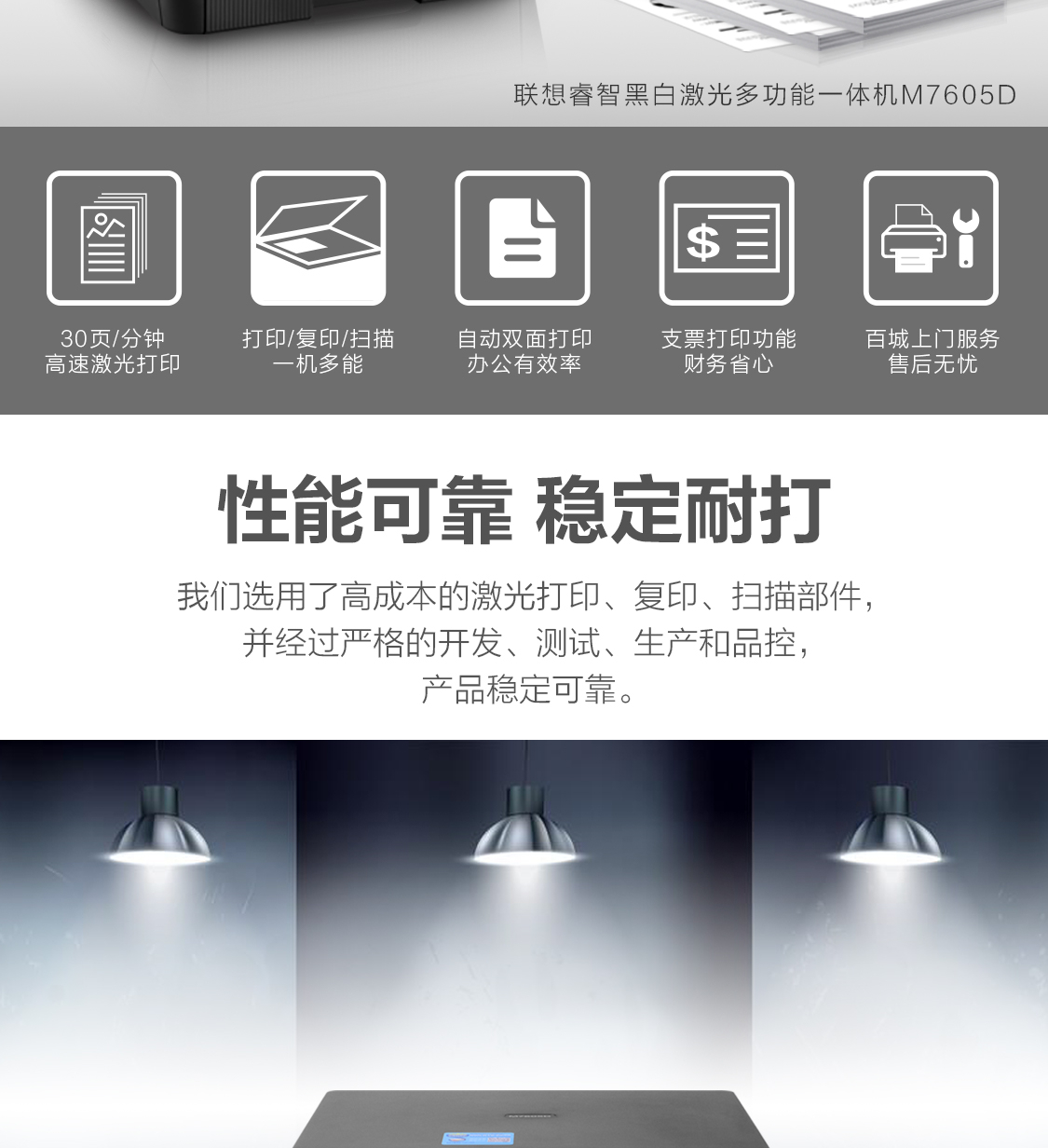 商品名称:联想(Lenovo)M7605D 黑白激光自动双面打印多功能一体机 商用办公家用(打印 复印 扫描 双面打印)