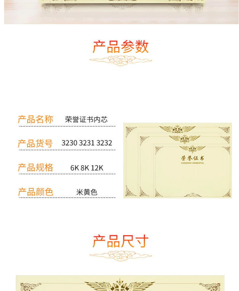 商品名称:得力(deli)12K荣誉证书内芯 3232 50张/包