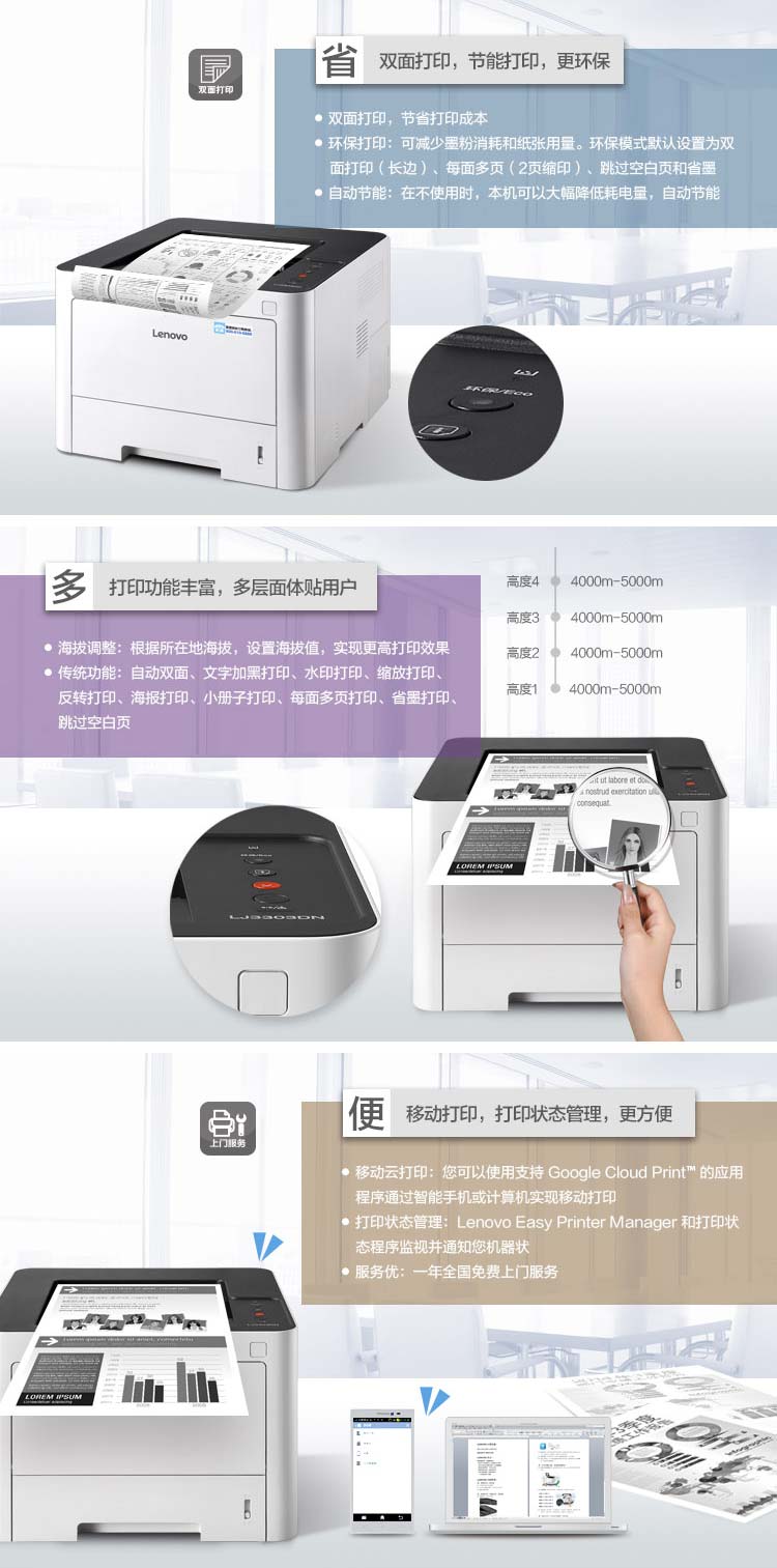 商品名称:联想(Lenovo)LJ3303DN A4黑白激光打印机 自动双面打印/有线网络