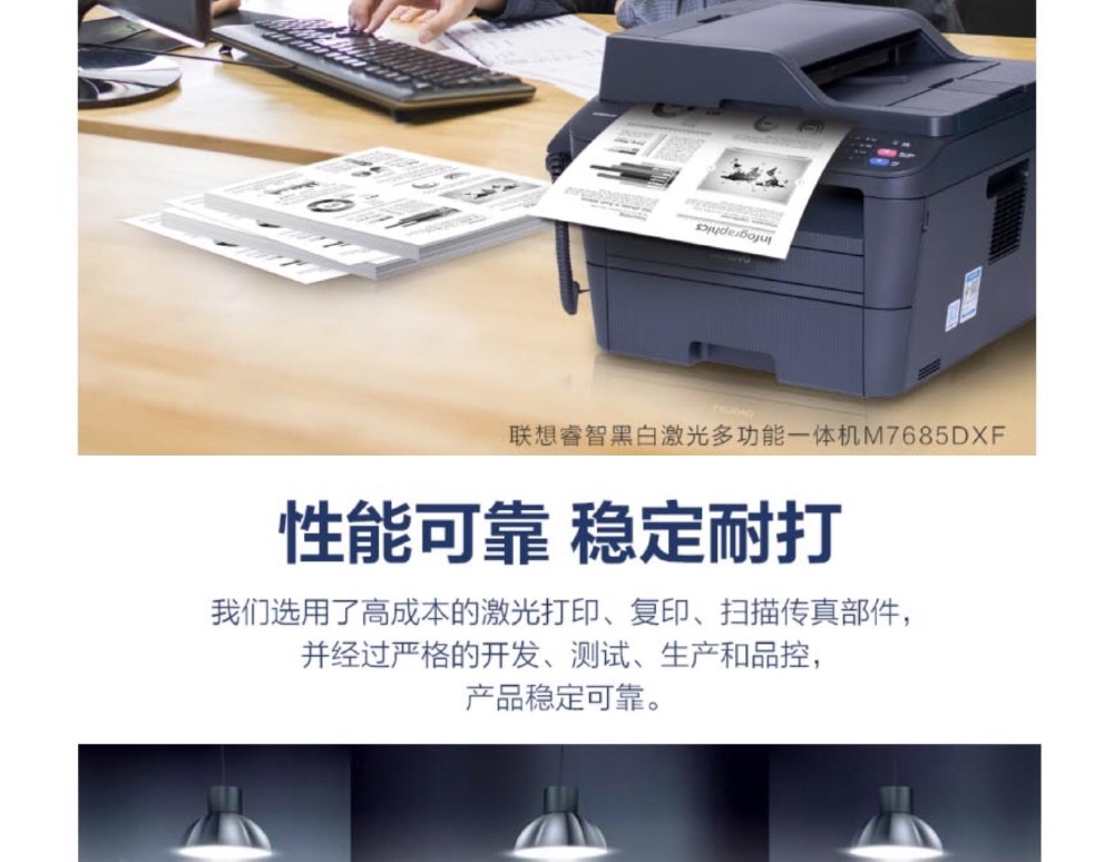 商品名称:联想(Lenovo)M7685DXF A4黑白激光多功能一体机 自动双面打印/复印/扫描 电话手柄